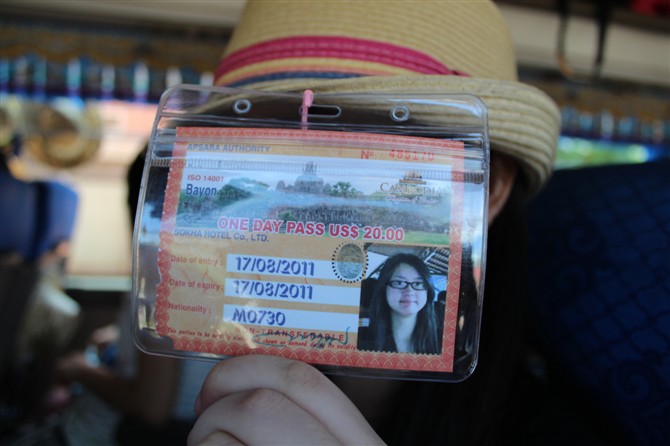 参观吴哥窟 的证件,我们买的是一日游,门口处照相,20美元一张,还有三日游和七日游。