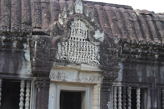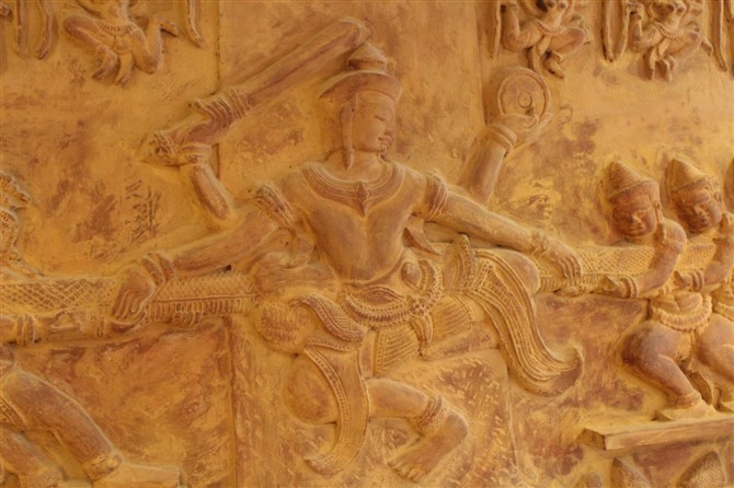 吴哥窟 里的很多图案都来源于印度 神话和传说,高棉自己的历史故事反而很少。原因是大概1000年前,很多来自印度 的商人来到高棉后,由于潮汐流向的原因,半年后才能回到印度 ,所以他们有大把时间和当地人交流,于是很多印度 神话和传说逐渐为当地人知晓,并成为了吴哥窟 的