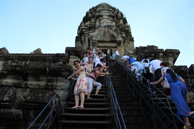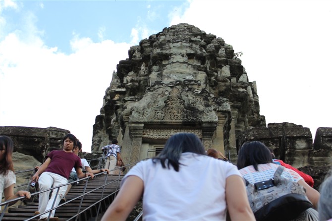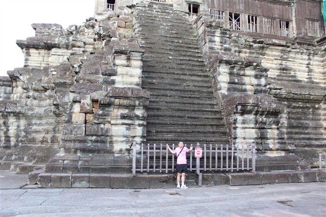这里极为陡峭,有一个在吴哥窟 工作的法国 历史学家的妻子在这里一脚踏空,从上面坠落,不幸遇难。