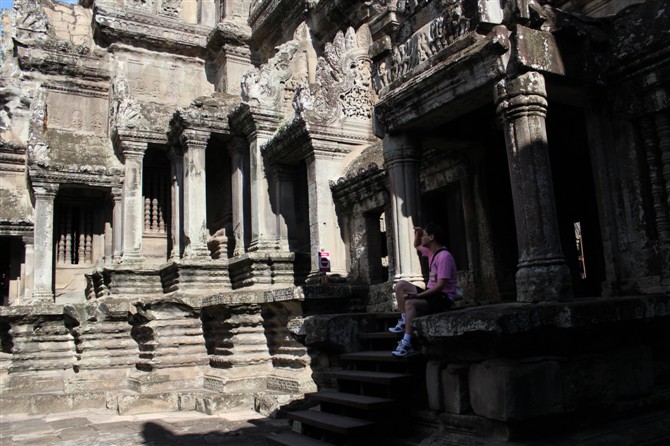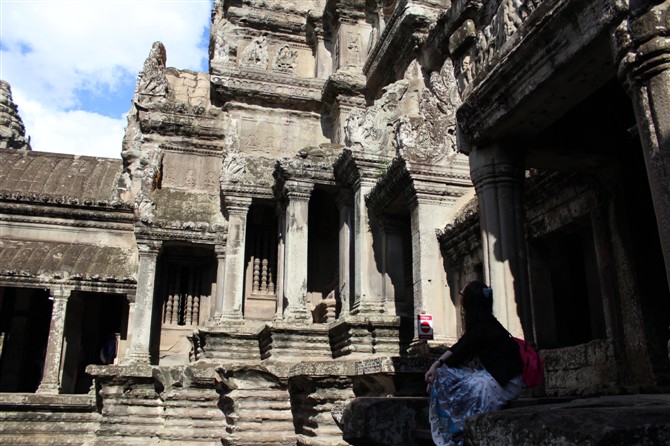 这个地方很凉快,老婆还说或许几百年前,高棉的达官显贵们会在这里纳凉。