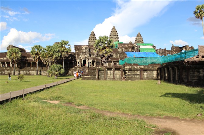 第二天早上,从酒店开车半个小时,就到达了此行最重要也是我们最期待的景点---“吴哥窟 ”。第一眼看上去的时候,有一点点兴奋,因为从很多介绍吴哥窟 的电视节目或图片资料里得知,前面的佛像就是吴哥窟 的象征。