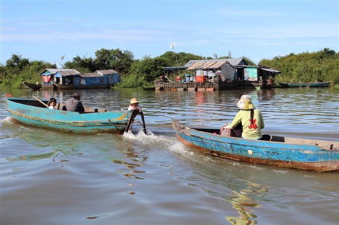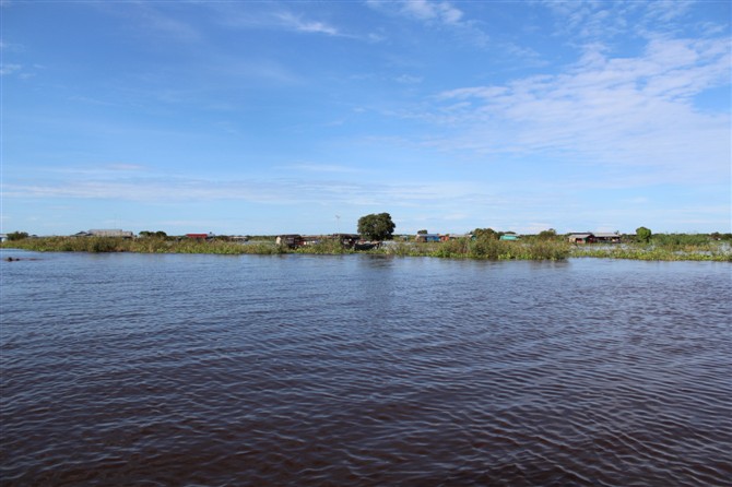 洞里萨湖 的雨季和旱季,面貌截然不同,旱季的时候面积3000平方公里,雨季的时候,湄公河 河水逆流,并不流向大海,而是涌入了洞里萨湖 。