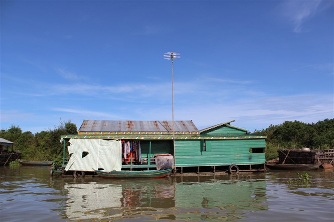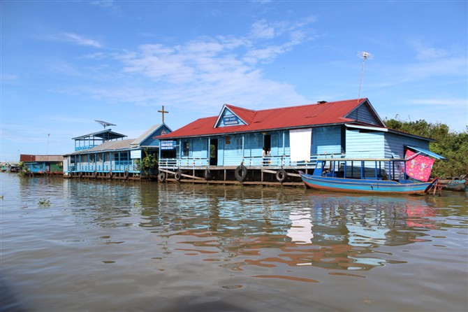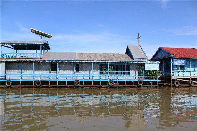 这是一个湖上的教堂,尽管大部分柬埔寨 人都信奉小乘佛教,但是还是有部分人信奉基督教。
