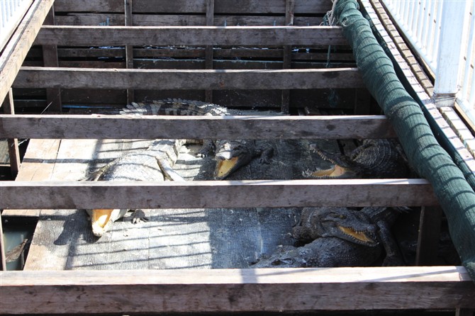 这些鳄鱼据说是柬埔寨 当地的品种,但我总以为是扬子鳄。