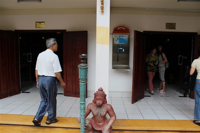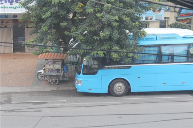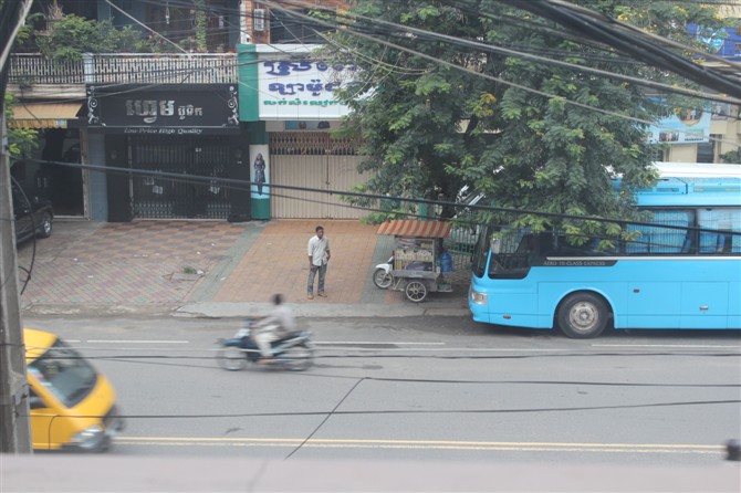早上7点醒来,迷迷糊糊的向窗外望去,看看金边 清晨的街头,看了一会儿才发现原来站在楼下对面的那位居然是我们的司机,不禁感叹他起的真早,因为我们8点才会出发,而他这么早就来了。