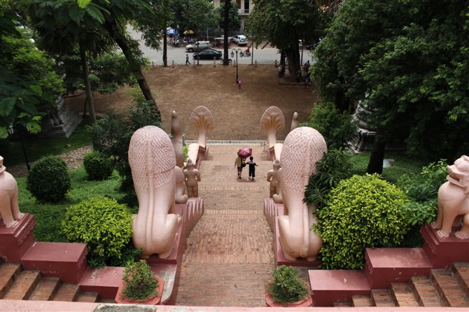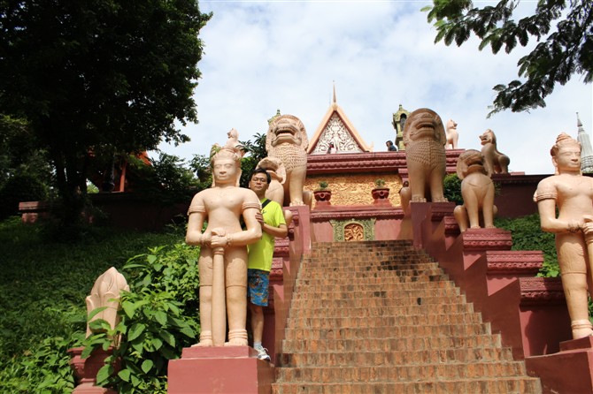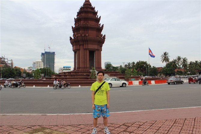 第一站是柬埔寨 独立纪念碑,位于金边 的闹市,由于不允许游人接近,所以我们只能隔着一条马路拍照。离纪念碑百十米就是柬埔寨 总理-洪森的住所。