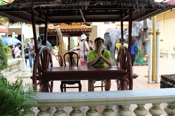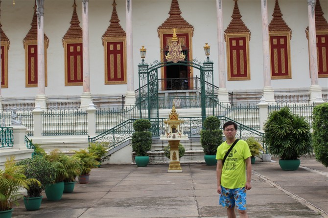 来皇宫 之前,特意换了一条长些的短裤,因为导游前一天晚上特意嘱咐不能穿凉鞋,不能穿长度不超过膝盖的短裤入内。