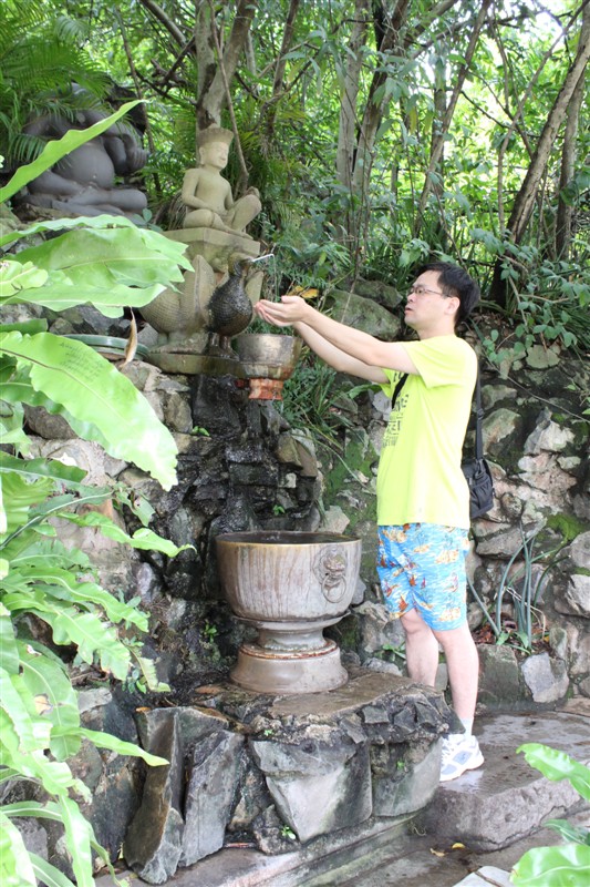 导游说用这里的水洗手可以去除晦气,团友们都在排队。