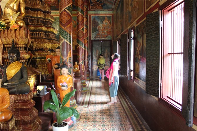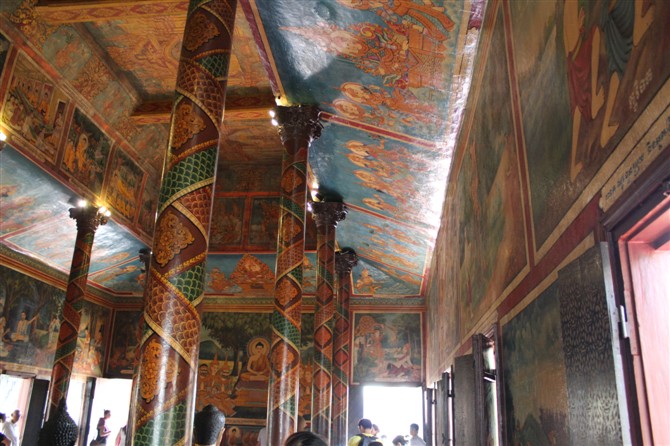 导游一边走一边讲解,但没有介绍回廊上的壁画,我是一下子就被吸引住了,或许是联想起了敦煌 。回廊上有长长有栏杆,并不允许游客进入,我是悄悄溜进去的。