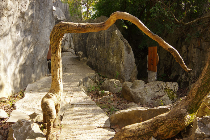 由于自己溶洞看的很多,因此没去九乡,就直接去了石林。中国的旅游就是如此的势利,石林门票并不便宜,175元,但是如果要加上观光车费25元的话,就是200元。相信大家看到售票处显眼的张贴着“石林景区步行通道3000米”的标牌都会去购买观光车票。自己出来已经超过1个月,所以体力上绝对没问题,因此,自己没有买观光车票,而是多走了这6公里的往返路。