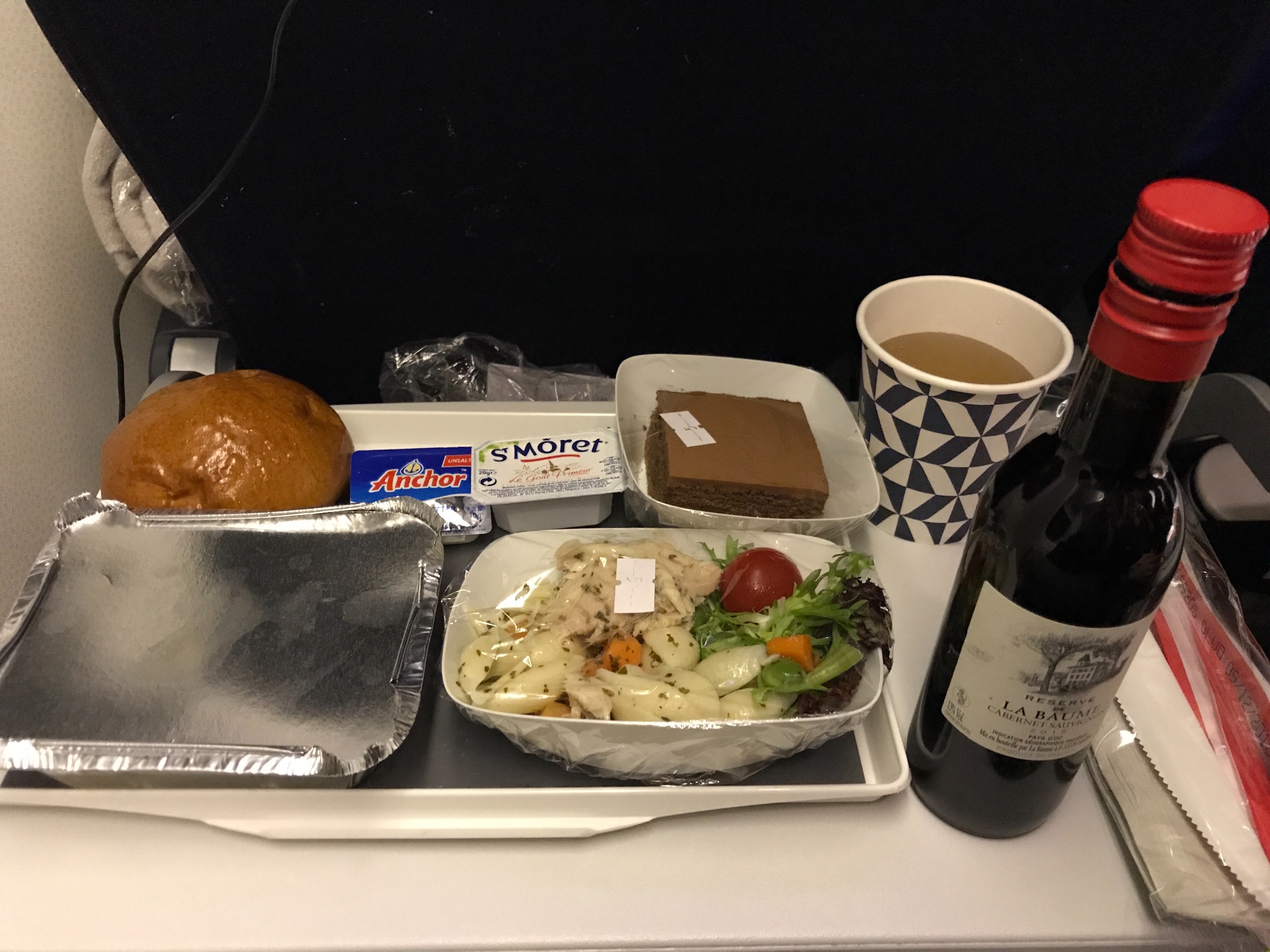 没错真的一直睡,我们在她们前排吃了夜宵,吃了早饭。去程法航的餐食不错,比回程荷航的餐食好~
