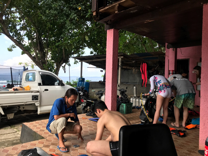 因为我是持证去fun dive的,所以这几天的任务是比较轻松的,OW和AOW的学员下午就要开始进行学习啦,我下午做一个check dive即可!