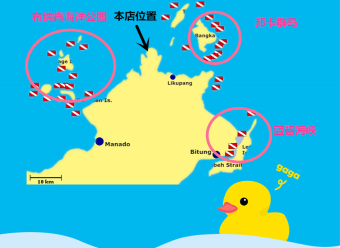 老板娘叫VIVIAN,我们都叫她V姐,人特好特实在,做事不墨迹,聊得好说不定把你潜水费用都免了,潜店呢位于美娜多主岛的最北面,与邦加岛一步之遥,邦加岛比起名声在外的布纳肯和蓝碧更是一个小众的潜水处女地,没有很多游客的到访,真正的让你感觉这片海被你承包的感觉,而且有一定几率可以遇到传说中的美人鱼哦(儒艮),当然看脸了,像我这种脸黑的人,就是在涛岛潜水的时候没看到鲸鲨,等我走了鲸鲨来了,同样这次去看儒艮,我去之前潜店有人看到了,等我到了,我也没看到......我能怎么办,我也很无奈呀。