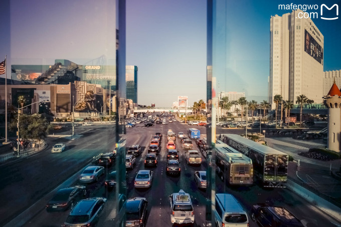 马不停蹄奔波4个小时之后,呈现眼帘的维加斯大街使我这一路上的满心期待来了一次彻头彻尾的高潮,那些错落有致的超级大酒店,楼宇之间五彩斑斓的霓虹灯,奢华的赌场、精致的广告牌,都诉说着它的往事,眼前的一切才让我真正的意识到纸醉金迷原来可以如此的彻底,从此开始刷新我心中关于拉斯维加斯的印记。