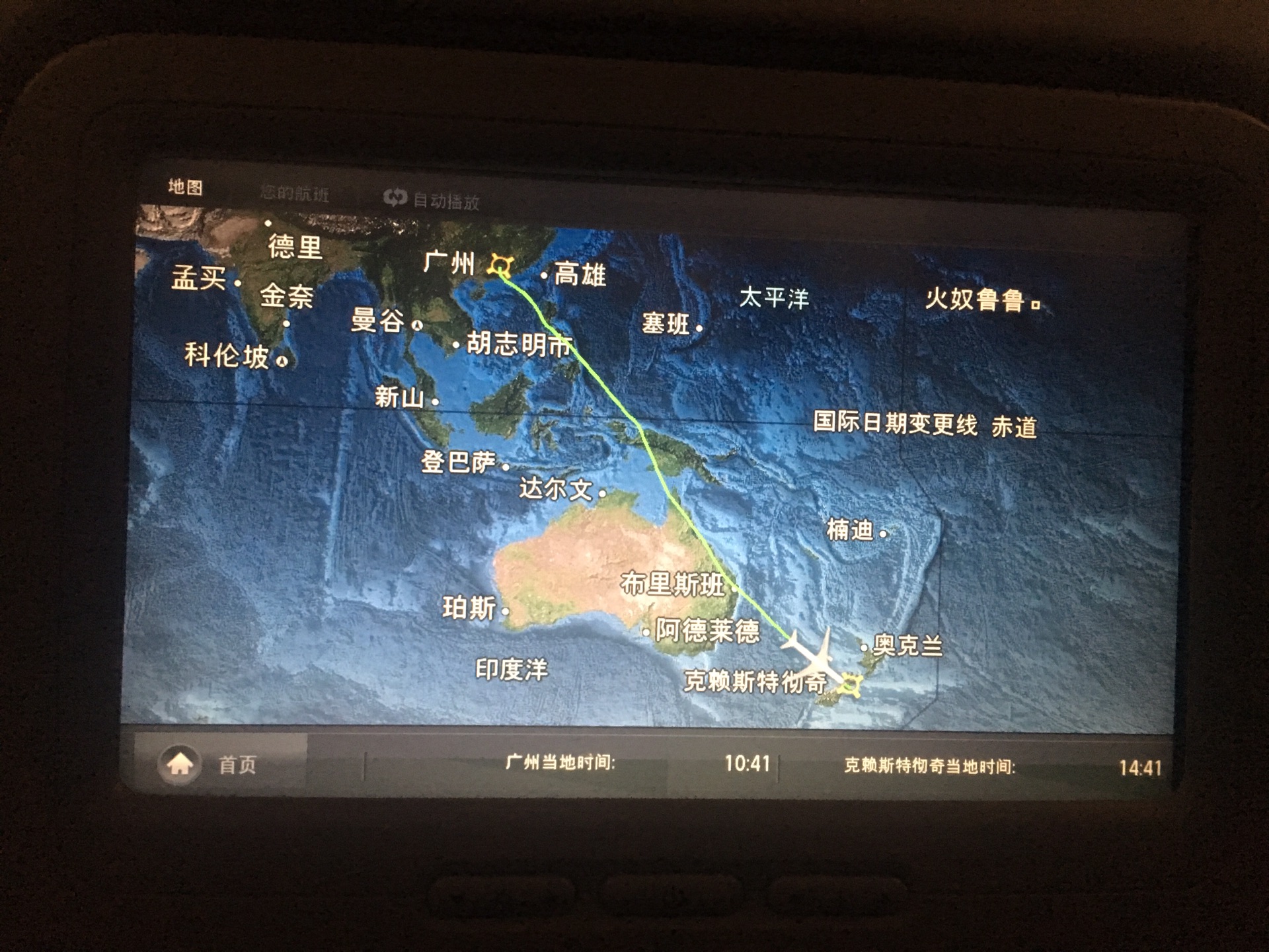 广州到基督城,南航,10个小时飞行时间