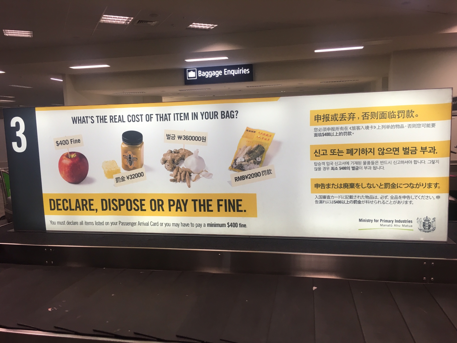 现在跟大家说水果,鸡蛋,肉类,蜂蜜等一些都属于违禁品,绝对绝对绝对不能带。带了食物没申报,400新币奉上就好。