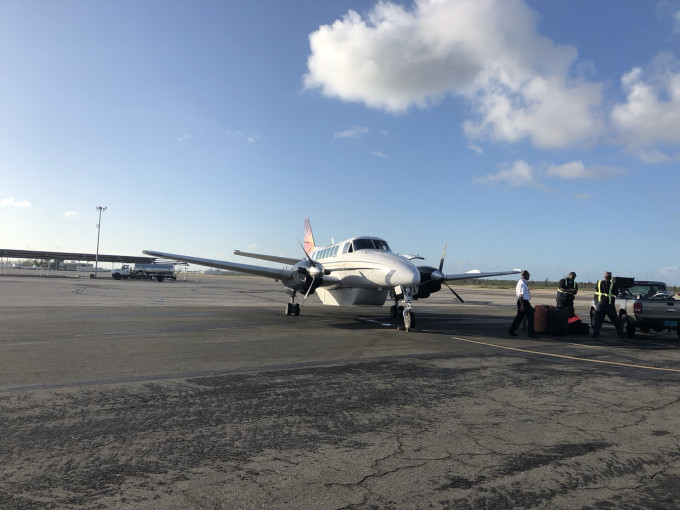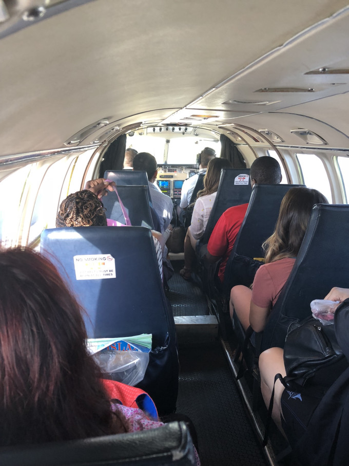 从拿骚可以乘船,也可以坐飞机抵达。我坐的是火烈鸟航空,差不多半小时的航程。