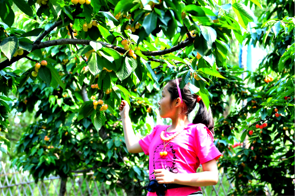 采摘地方离昌平城区特别近,万娘坟村,从昌平城区开车十几分钟。到了说是“大美田园”的采摘卡,服务生还不知道,还好老板知道,热情接待。走进樱桃园才发现,自己采摘的比在小区门口买的要甜美的多。可能是心理作用,两个孩子也挺高兴,(我闺女和她同学)汗水换来的成果,俩小家伙采的甚是认真。
