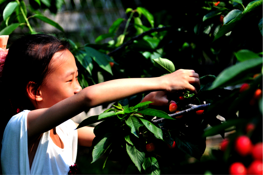 娇艳欲滴!看着你就眼馋啦吧!采摘的过程不仅呼吸新鲜空气,还舒展筋骨。孩子也玩的很happy!