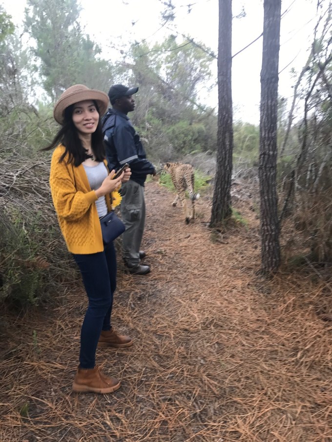 好了,这是其中一个推荐的地方,可以近距离遛豹,记得看过前辈们的攻略是可以touch的,不过好遗憾,现在不行。说起这趟行程,唯一一天下雨的,早上还是晴空万里,下午突然黑云密布,刮风下雨,好几个小伙伴还穿着短袖,差点都病倒了,所以各位去游玩还是带上外套,可以防晒又可以防寒~