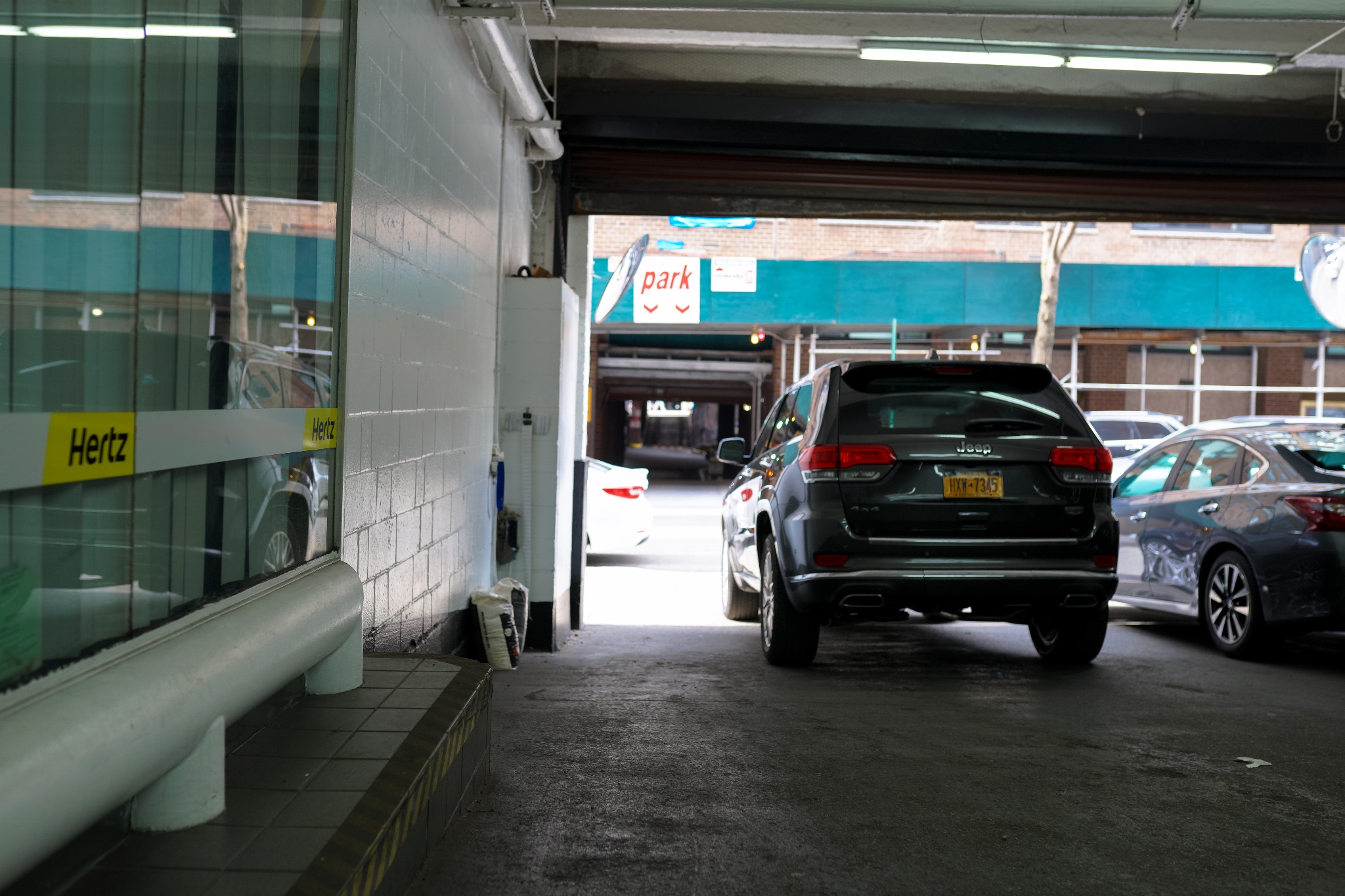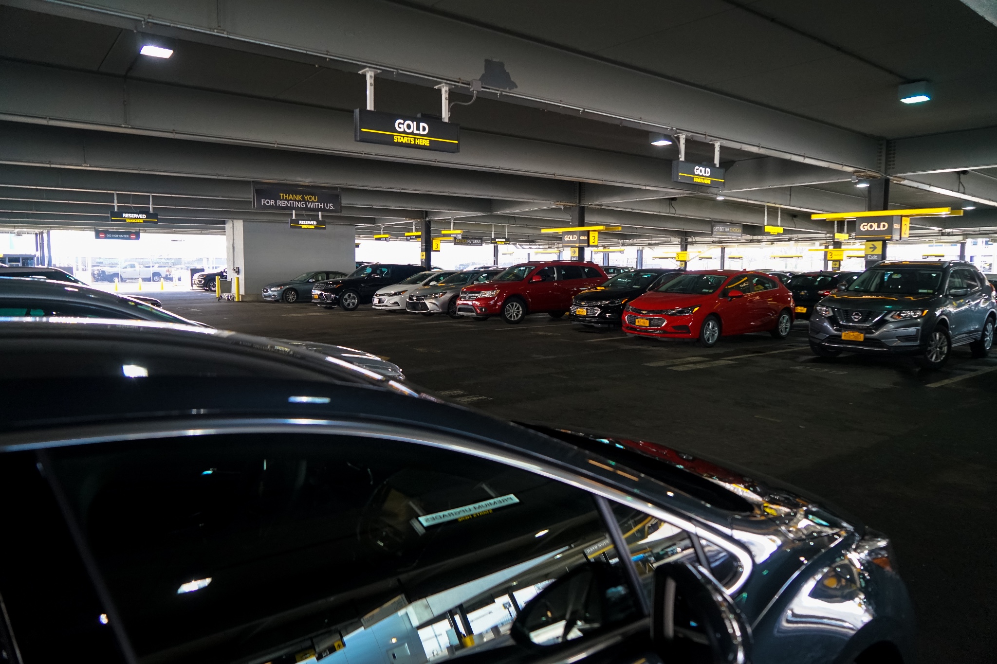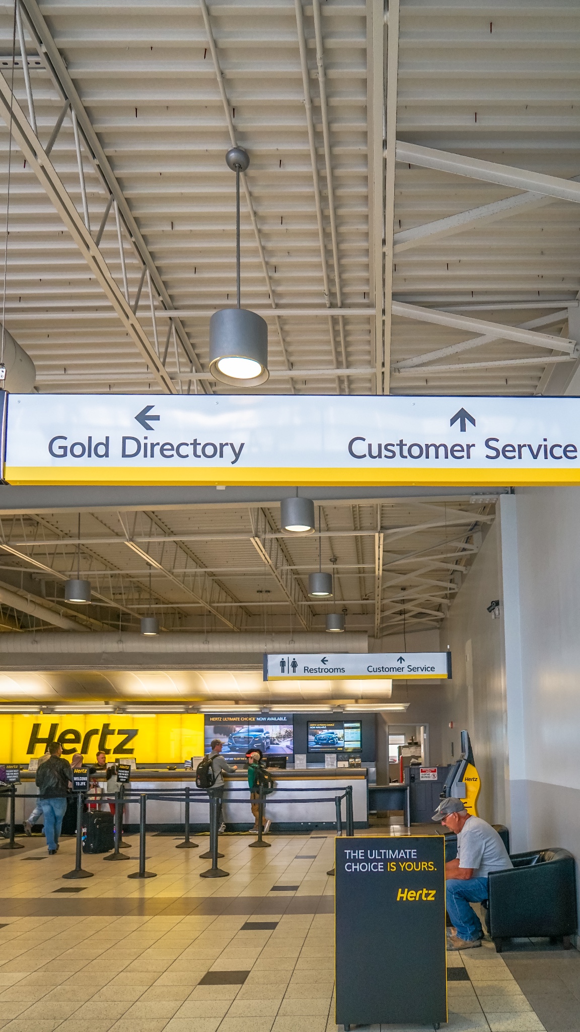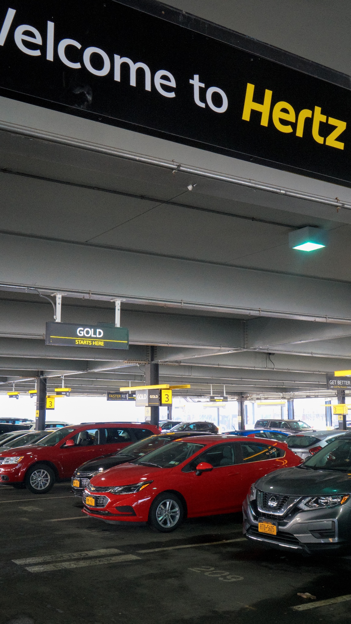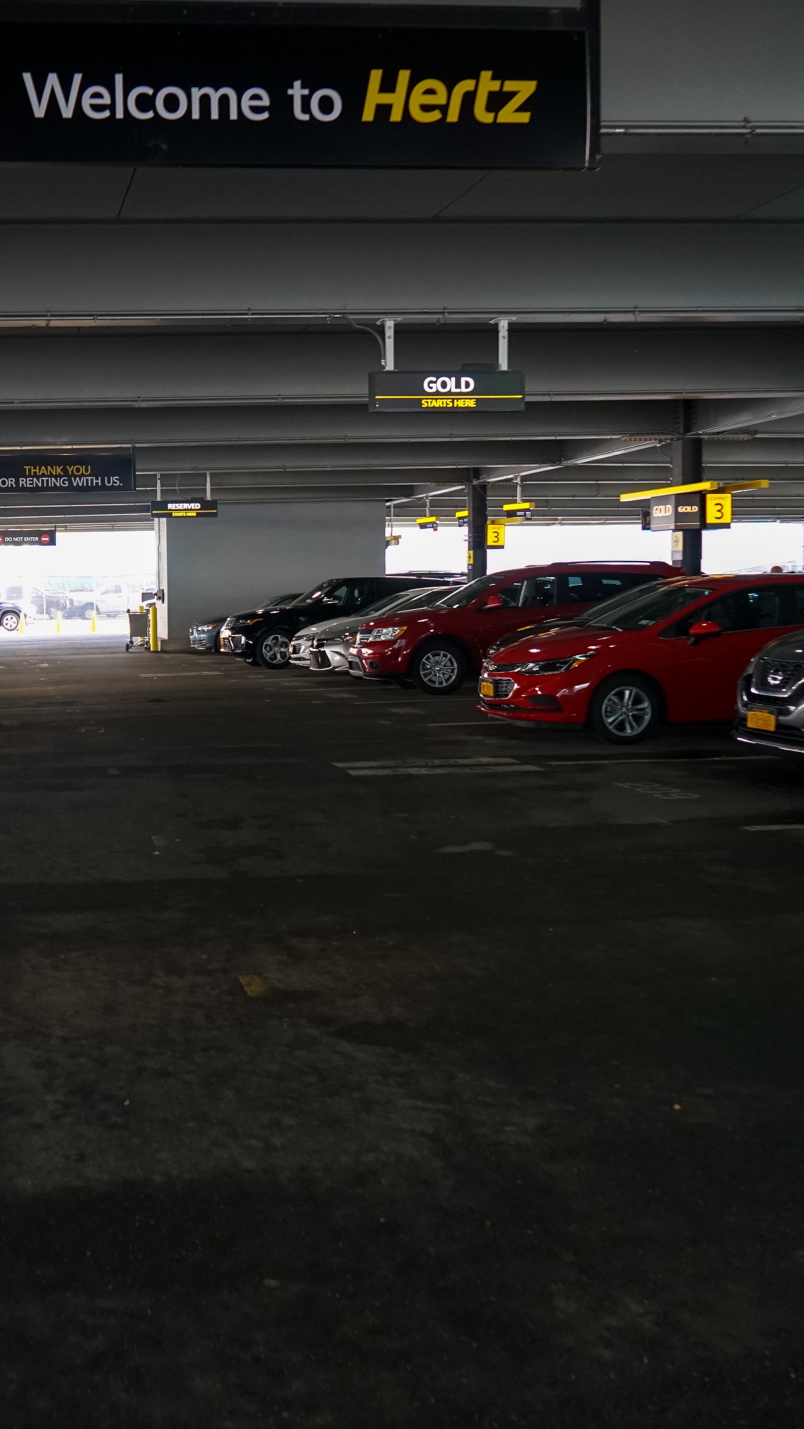 从肯尼迪机场出来就有免费的Air Train,一站路就到,下楼就是Hertz的门店,非常方便。门店非常宽敞,暖气很足,还有洗手间和饮用水,简直救了我们一命。柜台旁边有一块很大的屏幕,大屏幕上会显示租车人的姓名及停车位置,大家可以根据指示牌到达取车区域,不同级别的会员在不同的区域取车。作为金卡会员,是完全不用排队的,金卡会员还有自己的专门柜台。我建议如果大家都任何不清楚的就去柜台问,工作人员非常热情,很愿意回答大家各种问题。