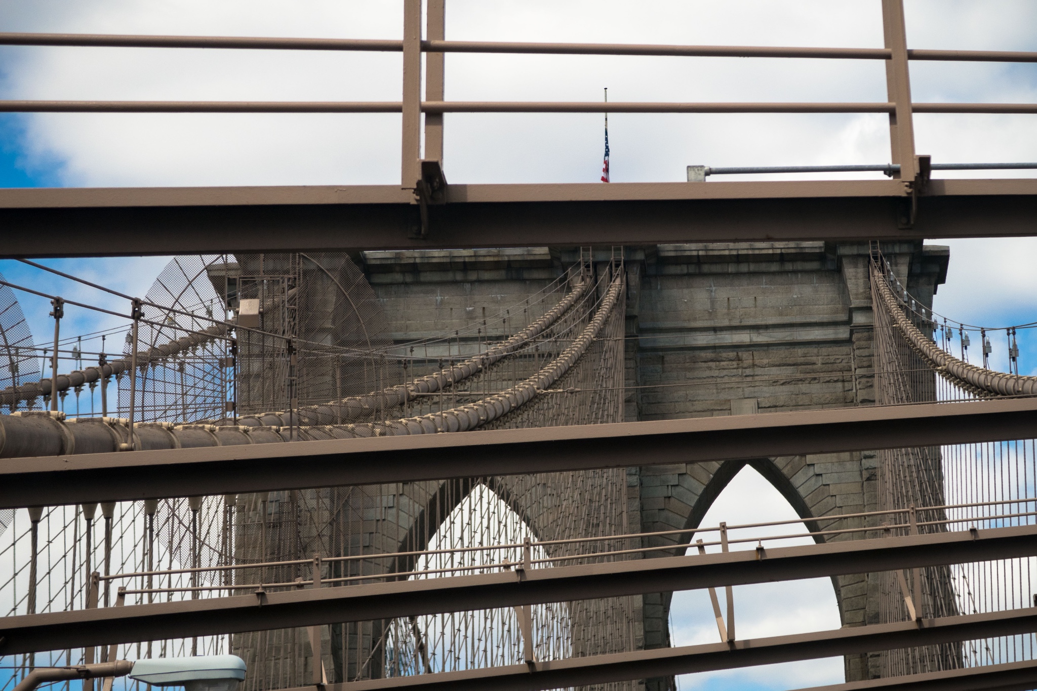 布鲁克林大桥是美国最古老的一座大桥,全长5989英尺(1825米),架于东河之上,连接着纽约市曼哈顿市区和布鲁克林区。它是世界上最大的悬索桥,也是世界上首次使用的钢丝吊桥,落成时被认为是继世界古代七大奇迹之后的第八大奇迹,被誉为工业革命时代全世界7个划时代的建筑工程奇迹之一。