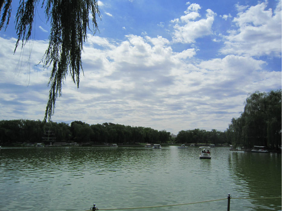 看月季、看广大人民群众如火如荼开展的文体活动、看蓝天白云、在湖边休息看水。总之,没白出门。天好得一塌糊涂,蓝天下的景儿配着阳光都美极了
