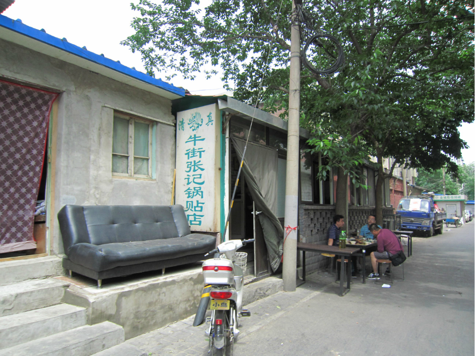 牛街张记锅贴店:宣武区右安门内益民巷内,电话:010-83535879,牛街超市一直往南,过两个路口,中石化加油站旁小巷内,路东。附近显著标志:小巷对面往南是回民医院。锅贴每种3两起卖,3两15元。饭点满员,人多需等位,人少可拼桌。