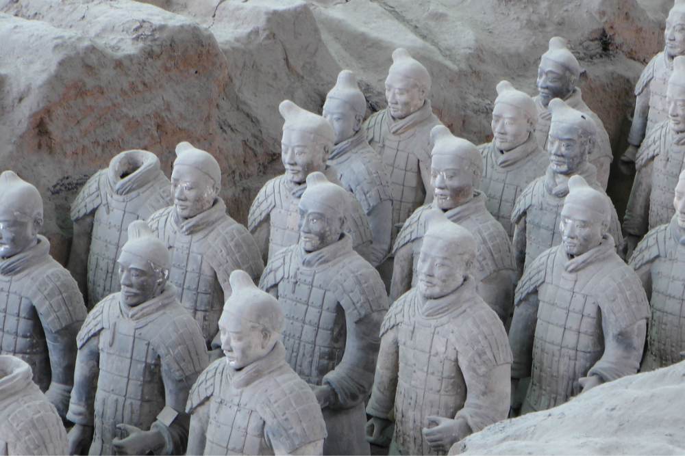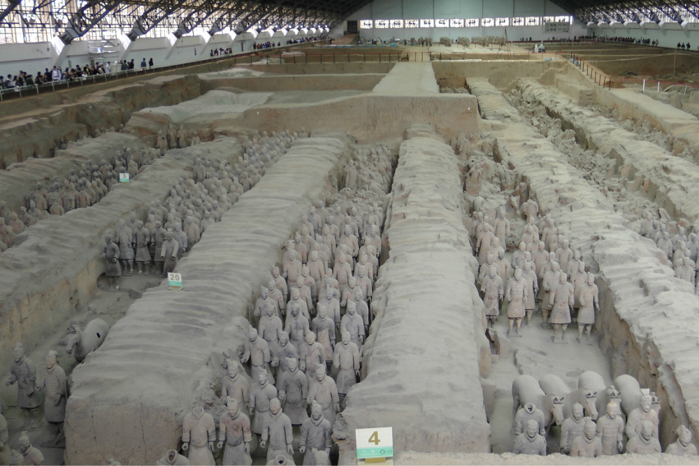 世界八大奇迹之一的秦始皇陵兵马俑是西安 的名片,就好像来北京 不能不去故宫长城,来西安 也不能不看兵马俑。秦始皇陵和兵马俑的出土陶俑的已挖掘部分的排场,远没有我预想的精致和庞大,以至于最初的感觉还不如在电视上看记录片更直观、更详细。直到我们从挖掘大厅到秦始皇陵园的一路游览,才知道被挖掘的部分仅仅是整个陵园的冰山一角,始皇帝还沉睡在硕大的墓冢下,接受2000多年后来自四面八方人们的窥探和瞻仰。参观过的陵墓不少,印象深刻的有朱元璋的明孝陵、孔氏家族的孔林,再有就是这中国 历史上第一个封建君主的秦始皇陵。如果说布衣皇帝刻意把自己标榜和诠释成天子,孔氏家族一贯延续着朴素和谦卑,那么,秦始皇的野心、权威和不可一世是那么真实的表现在他的生前逝后。有人说,他是个有作为的皇帝,统一了中国 ,统一了货币、文字、度量衡;有人说,也他是个暴虐的皇帝,焚书坑儒和修建皇陵牺牲了多少百姓的生命和家庭的幸福;我想说,他还是个坦率真我的皇帝,他不掩饰内心、不压抑欲望、不动摇决心、不放弃梦想。
