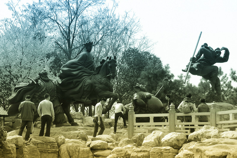 有人说芙蓉园是人造景观,不值得一看,但恰恰是有了人的衬托,才使这个微缩了的院子更加有灵气。紫云 楼的南面,第一次沉迷于舞狮表演,在庙会上不舍得浪费时间驻足的中国 传统艺术,在今天看来竟是这样的美妙绝伦。不需要华丽的舞台,不需要铺张的排场,五、六组由低到高排列的铁桩就是表演场地。这是一头青春期的小狮子 ,已经掌握了熟练的捕猎技巧,却不失顽皮可爱。时而挠挠爪子,时而扭扭屁股,时而在地上打滚,时而在铁桩上跳跃,时而金鸡独立,时而徘徊快步。流畅的动作会让观众误以为是一个人在表演,与鼓点儿娴熟的配合烘托着一个又一个扣人心弦的高潮。演出落幕,观众们报以持久的、热烈的掌声,孩子们争相和小狮子 合影,这时我才发现,演员原来也是十几岁大的孩子,由衷的从心底向他们表示钦佩。除此之外,湖中人工饲养的大块头金色鲤鱼、《西游记》师徒四人惟妙惟肖的人工雕塑、仕女馆周围一个一个体态丰盈、神情饱满的唐代女官石像,让我丝毫感觉不到矫揉造作,相反,我想象着在一千多年前的唐代,人们信步闲游时的情景大概就是这个样子吧。