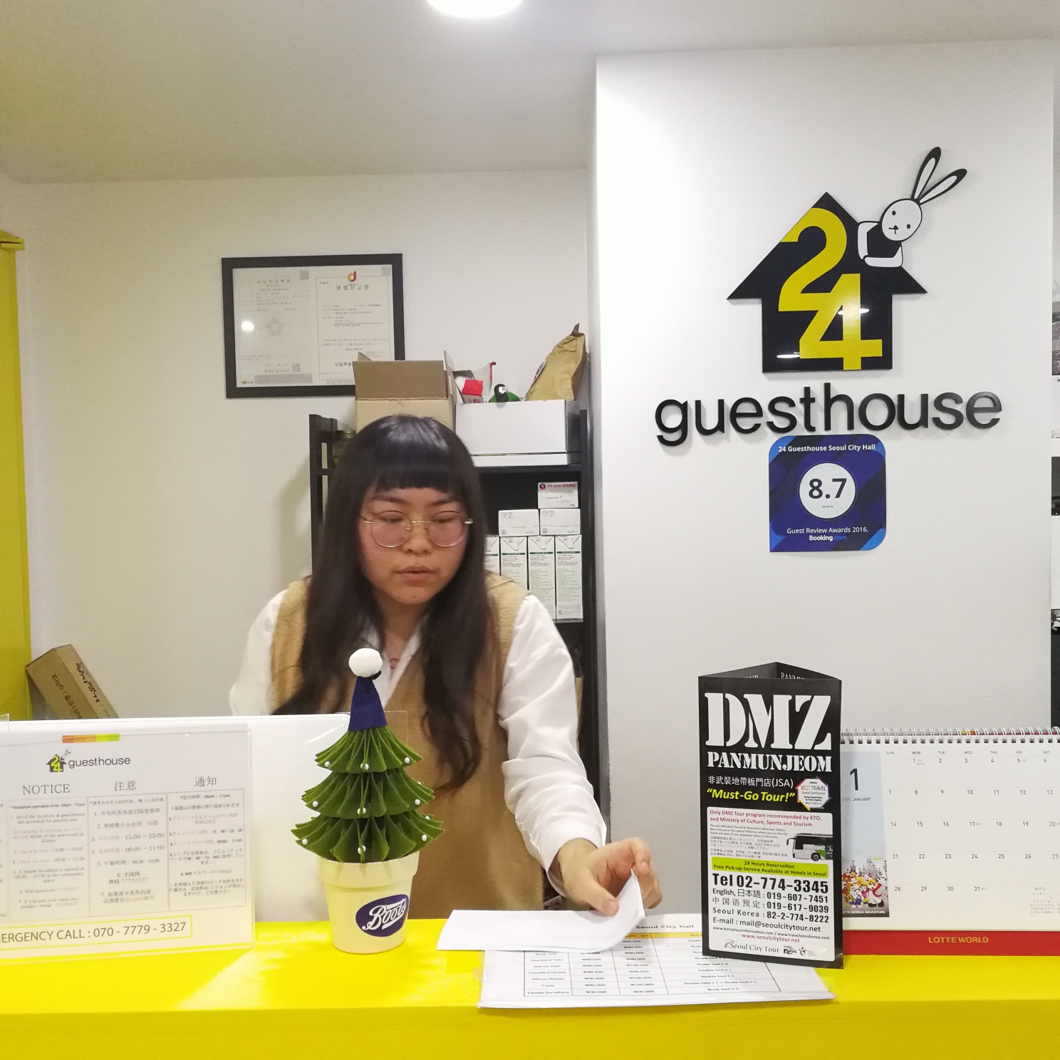 為了降低成本,我們最終決定訂 首爾市政廳24號旅舍 (在德壽宮旁)好近地鐵站,好安靜好安全,超級方便呢!