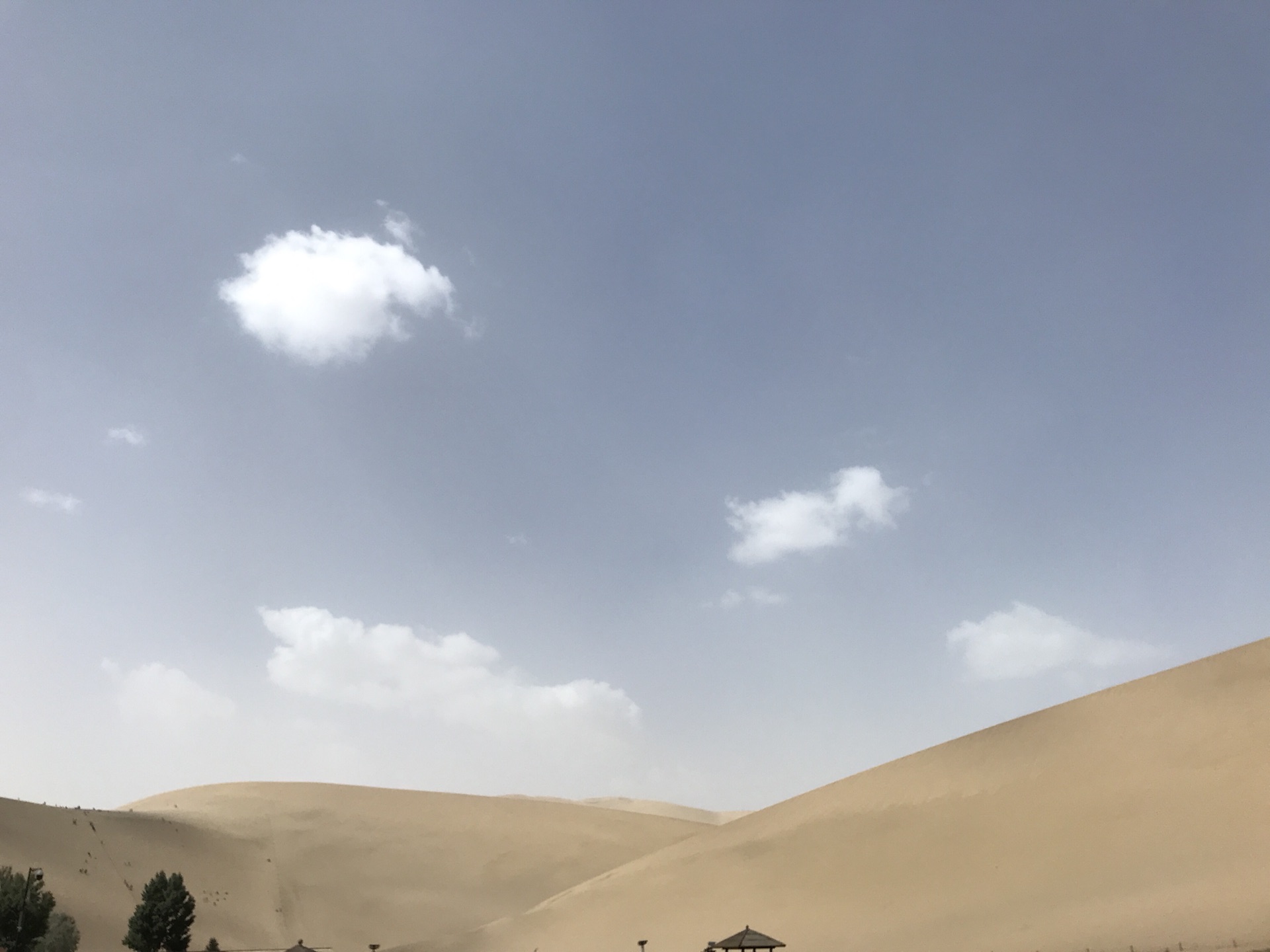 酒店步行到鸣沙山月牙泉景区差不多20分钟,一路走一路感叹天气的干燥