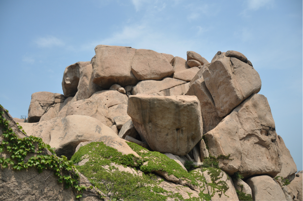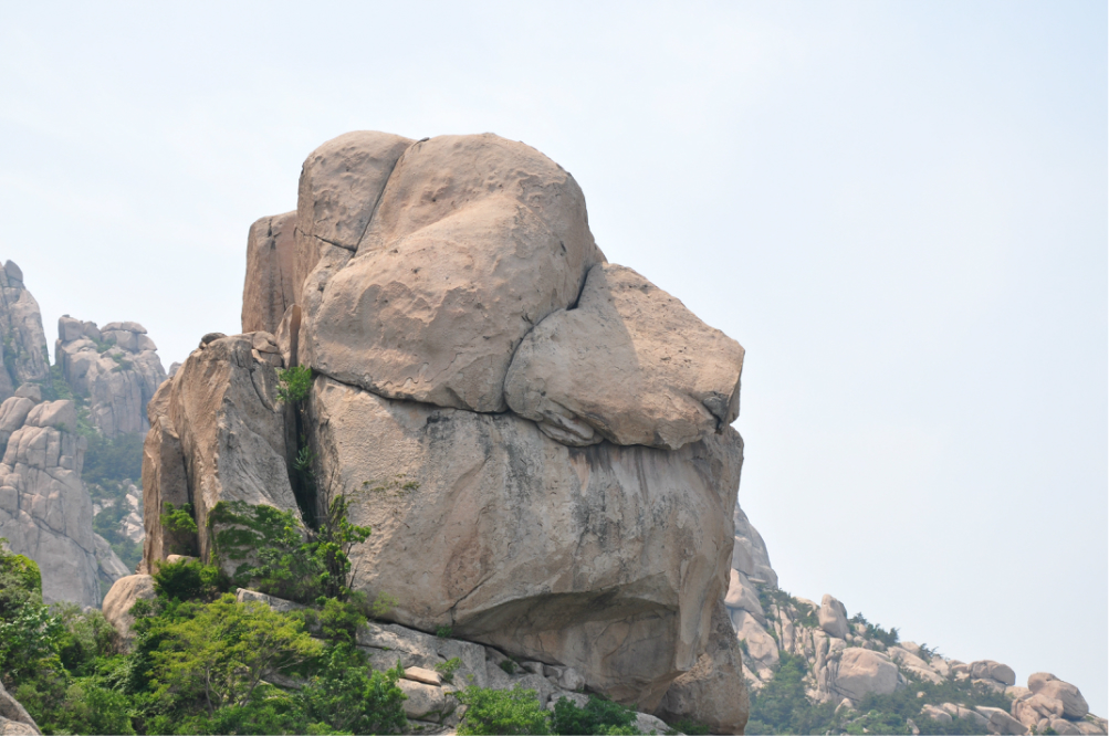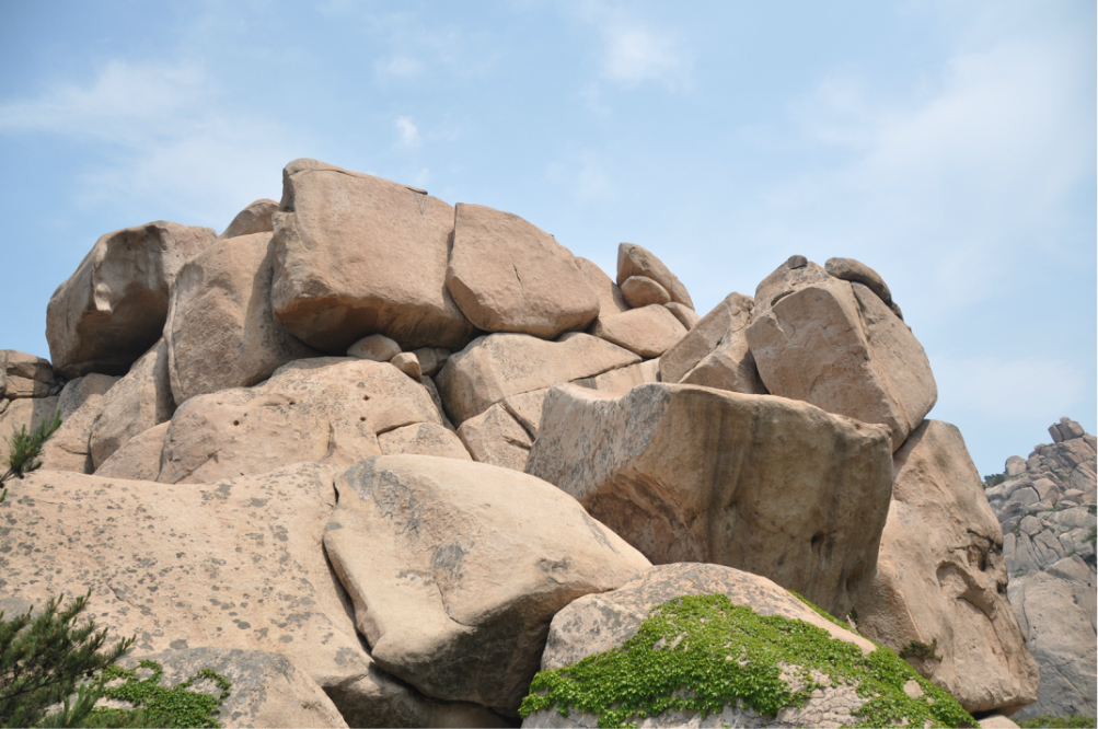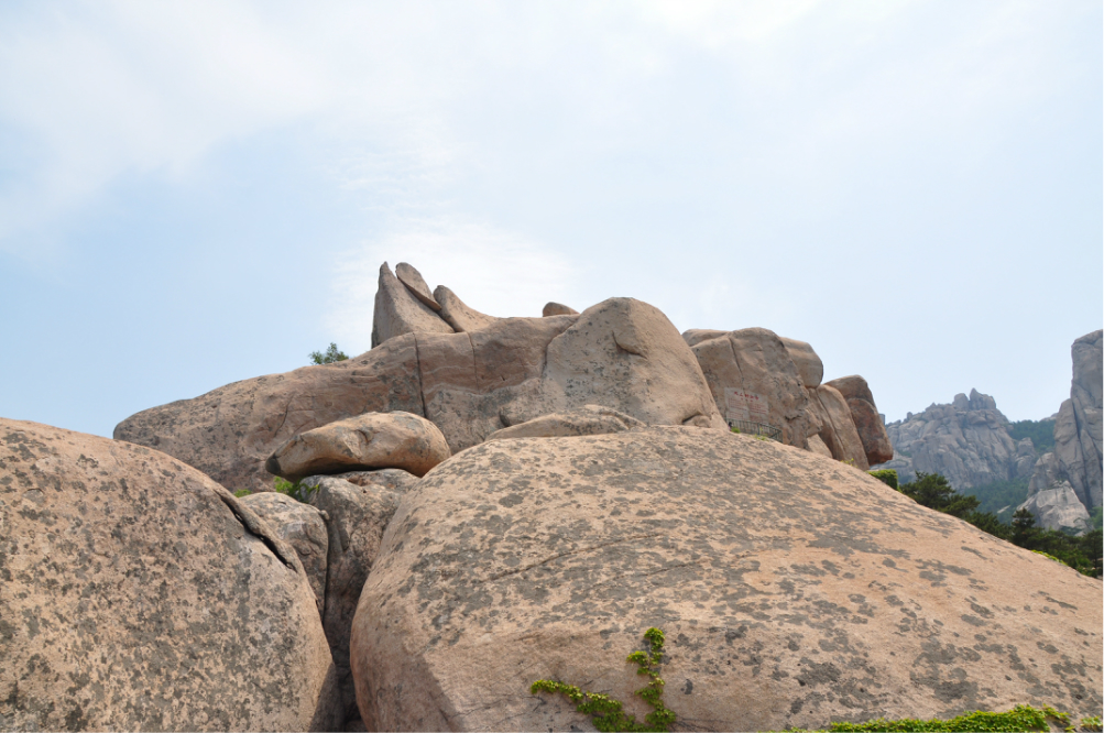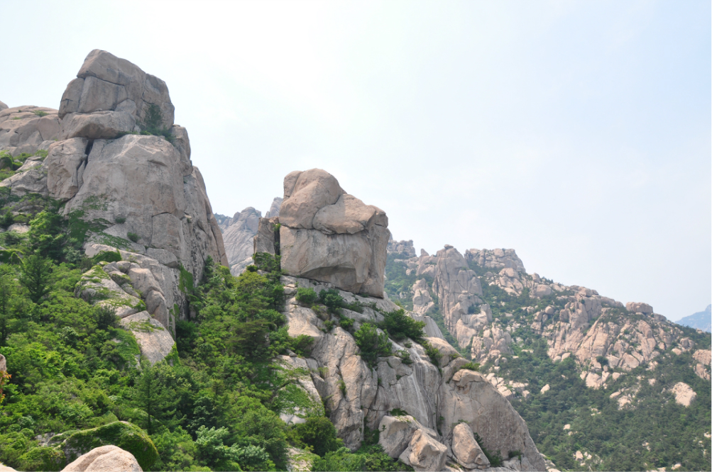 崂山 的独特景致和花岗岩密不可分。大小不一,形状各异的砾石,在青松 翠柏的掩映下,自成风景。当然,如果再有些雾气缭绕,就更会让人称奇叫绝了。