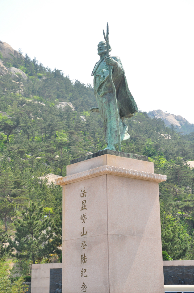 自古以来寺庙的选址都极为讲究,这华严寺也不例外,靠山面水,很有气势。眼前一尊东晋法显和尚崂山 登陆的青铜像,气宇不凡,让人不禁想到一千五百年多年前,这位第一个远赴印度 取经的法师在去尼泊尔 、印度 、斯里兰卡 求取佛经过程中所经历的种种磨难。他在乘商船回国途中遇飓风,漂流到崂山 后登陆。这种偶然我一直相信其背后是有必然性的。