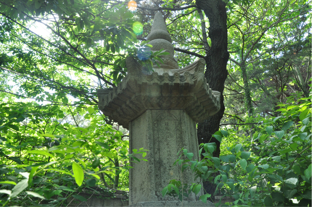 进入塔院,便看到一个七级砖塔,这是华严寺首任方丈慈沾大师的藏骨处。两旁还各有二个石塔,具体是哪位高僧的,就不太清楚了。我诚心叩拜后退出。塔院后面还有一片塔林 ,因为时间关系,没有前去参拜,转而继续前行。