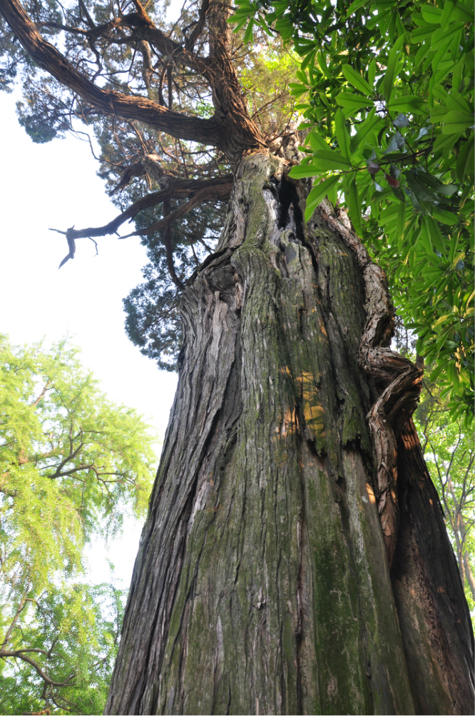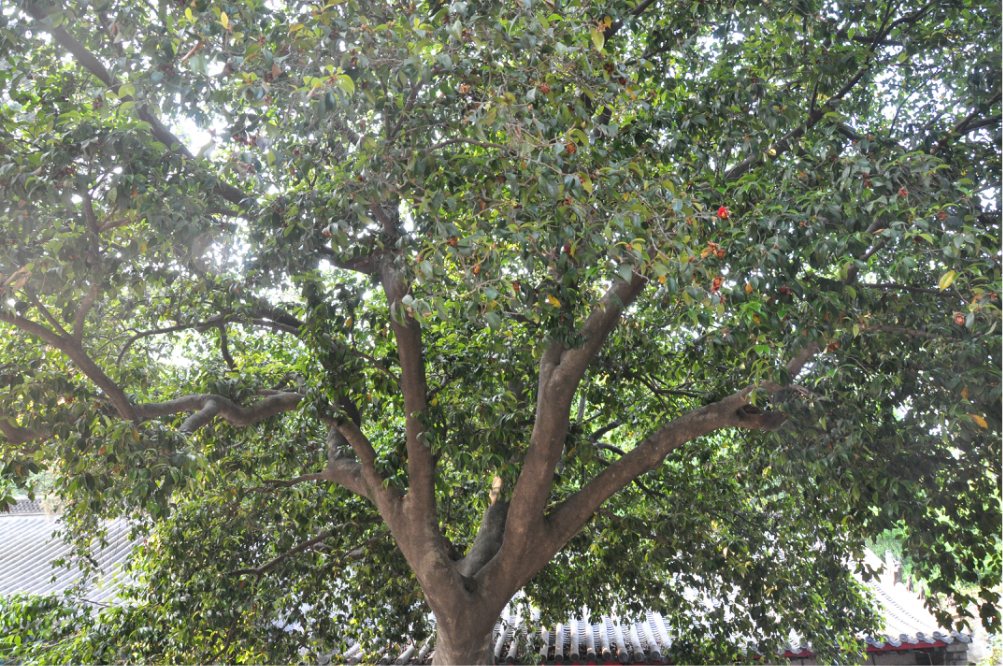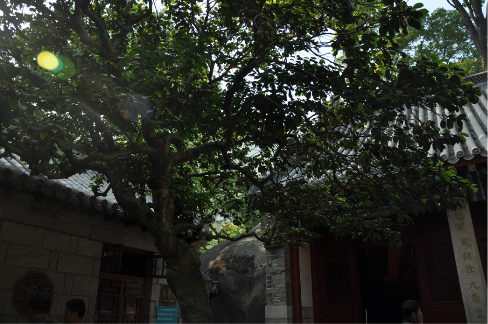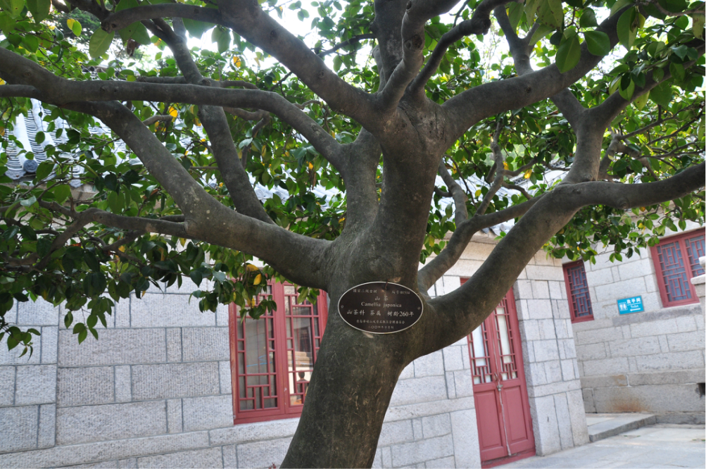 给我印象最深的还是太清宫的奇花异草。汉柏、唐榆、宋银杏历经千年风霜,今犹华茂葱郁。山茶花也叫耐冬,这里就有百年的红白山 茶。我们虽然错过了其盛花期的美景,但也看到了几朵凋零的花朵。