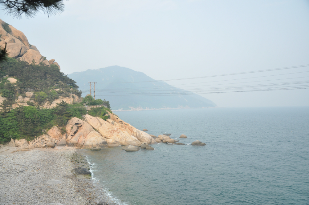 [远处的山峰就是崂山 矿泉水商标的取景处]
