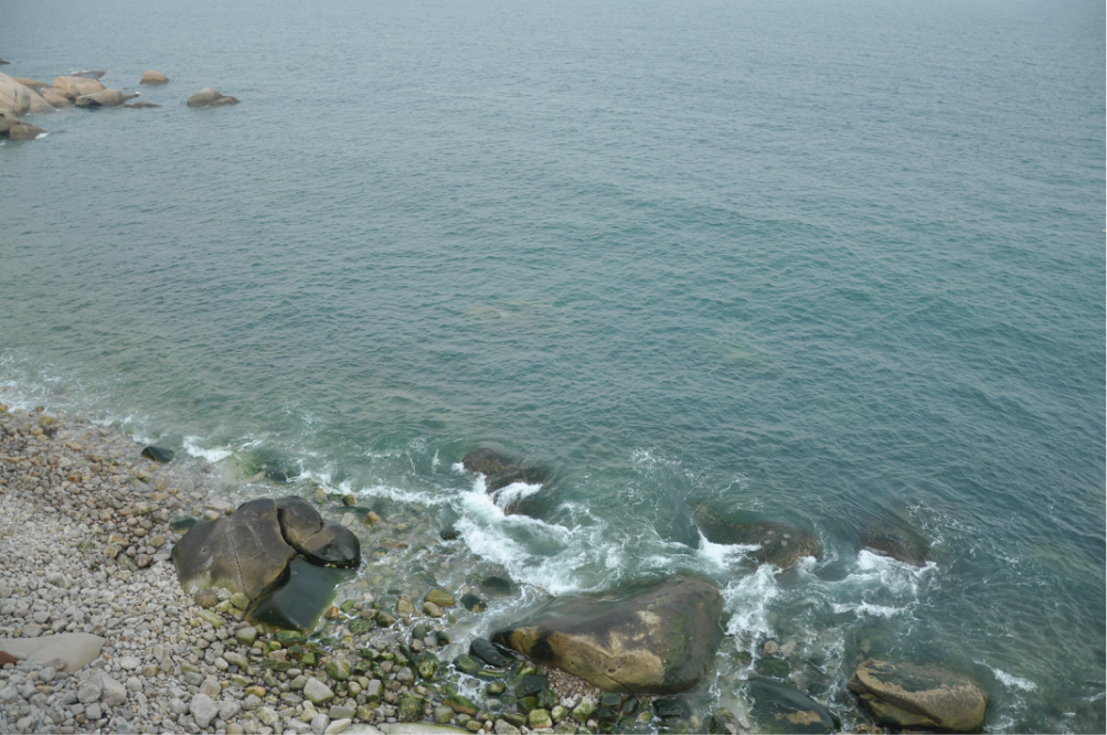 这个茶摊的位置选得很不错,正好在山头的一块平地上,视野非常开阔。从这里远眺,不远处的仰口湾,一边是红瓦顶——山东 海滨民居的最大特征,让人一览无余;一边碧海白浪拍岸,美得那么透彻,那么直接。据说“崂山 绿石”就出自这里的海底。另外,据说一战期间(1914年),日军是在仰口湾登陆攻占青岛 的。这也让青岛 成为第一次世界大战中亚 洲唯一战场。