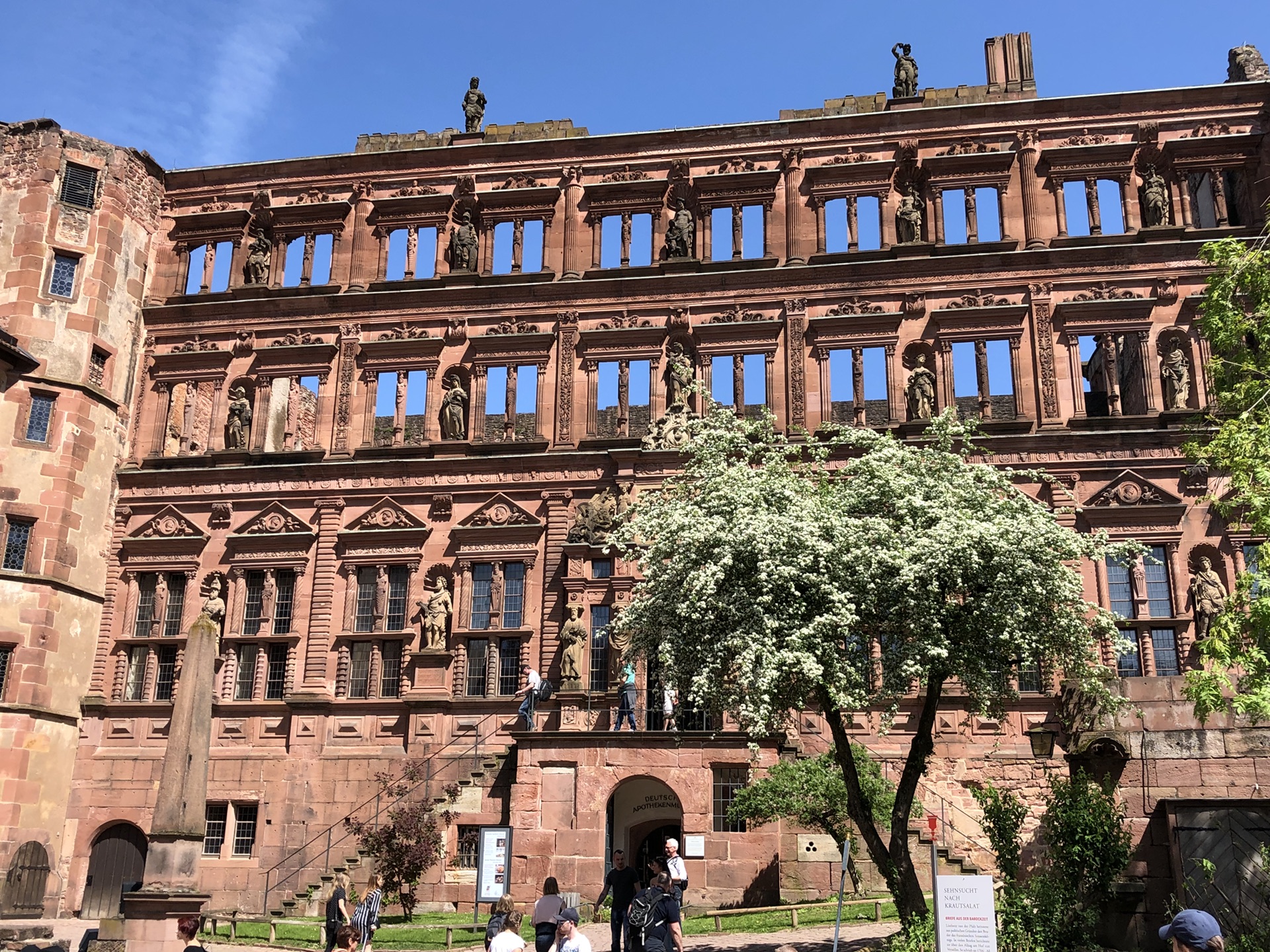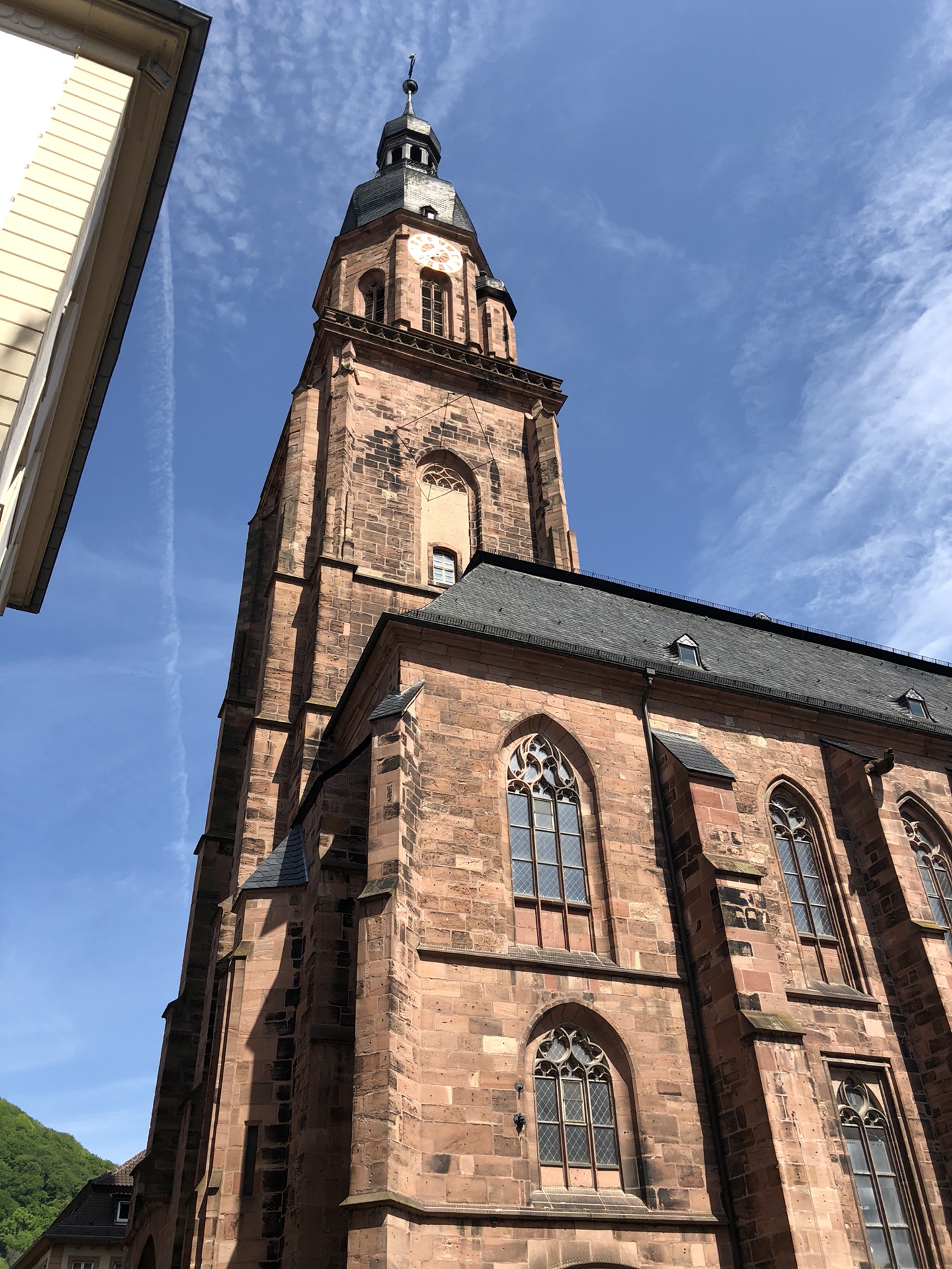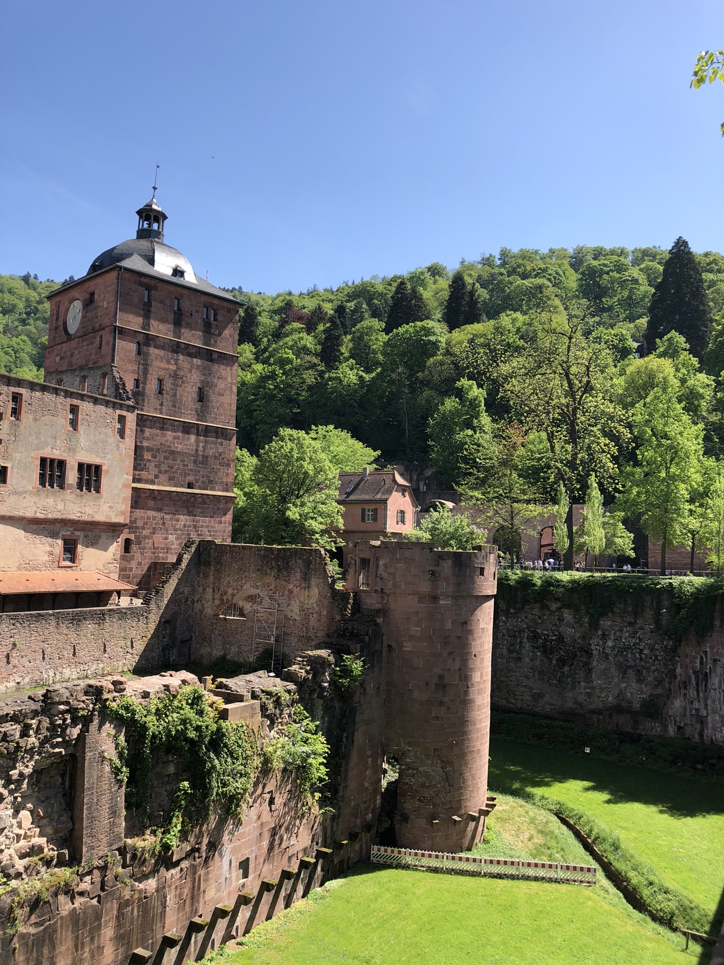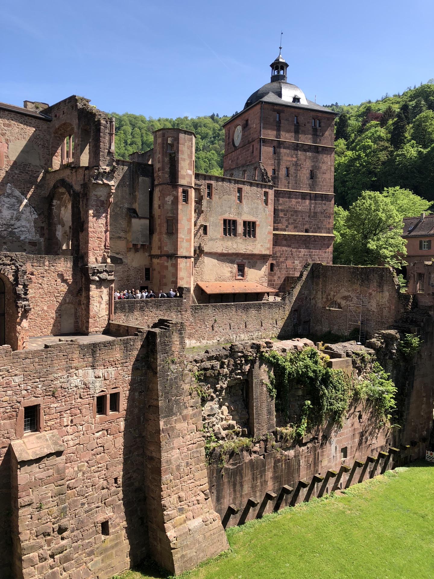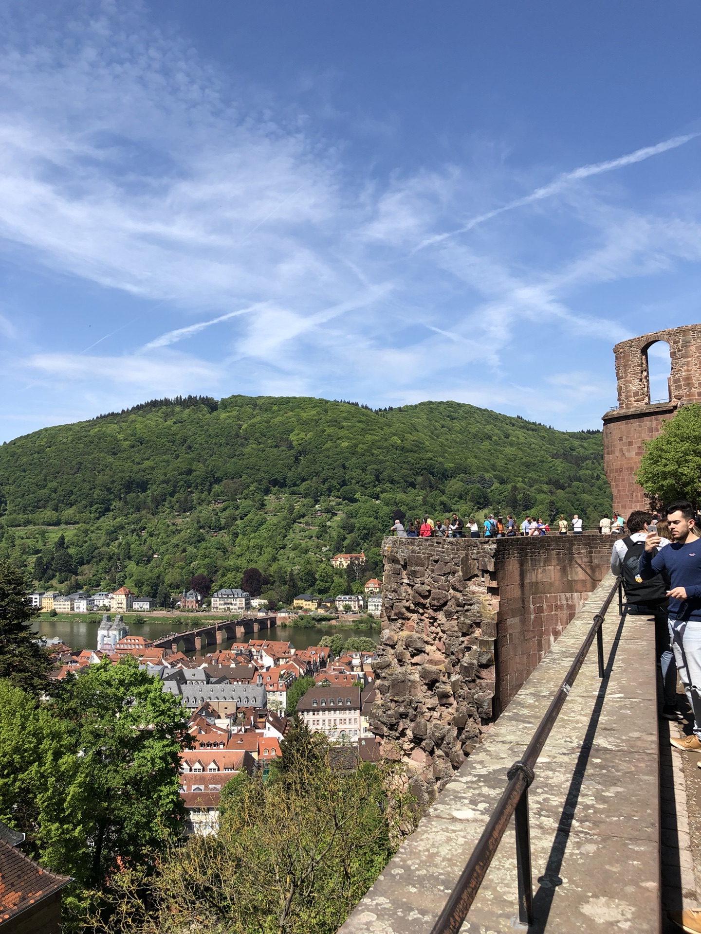 登上山,在城堡里面看到的风景,可以看到整个城市的设计风貌,看到老桥,遥望对面的哲学家小径。最关键的是,作为国王,可以体验到优越的统治力,君临天下说的就是此时的感觉。不清楚当时新教徒和国王的关系是什么样的,但是从建筑摆放的位置看,国王依旧高高在上,但是新教徒们也占据了城市中心的位置,这也算一种政教平衡吧?