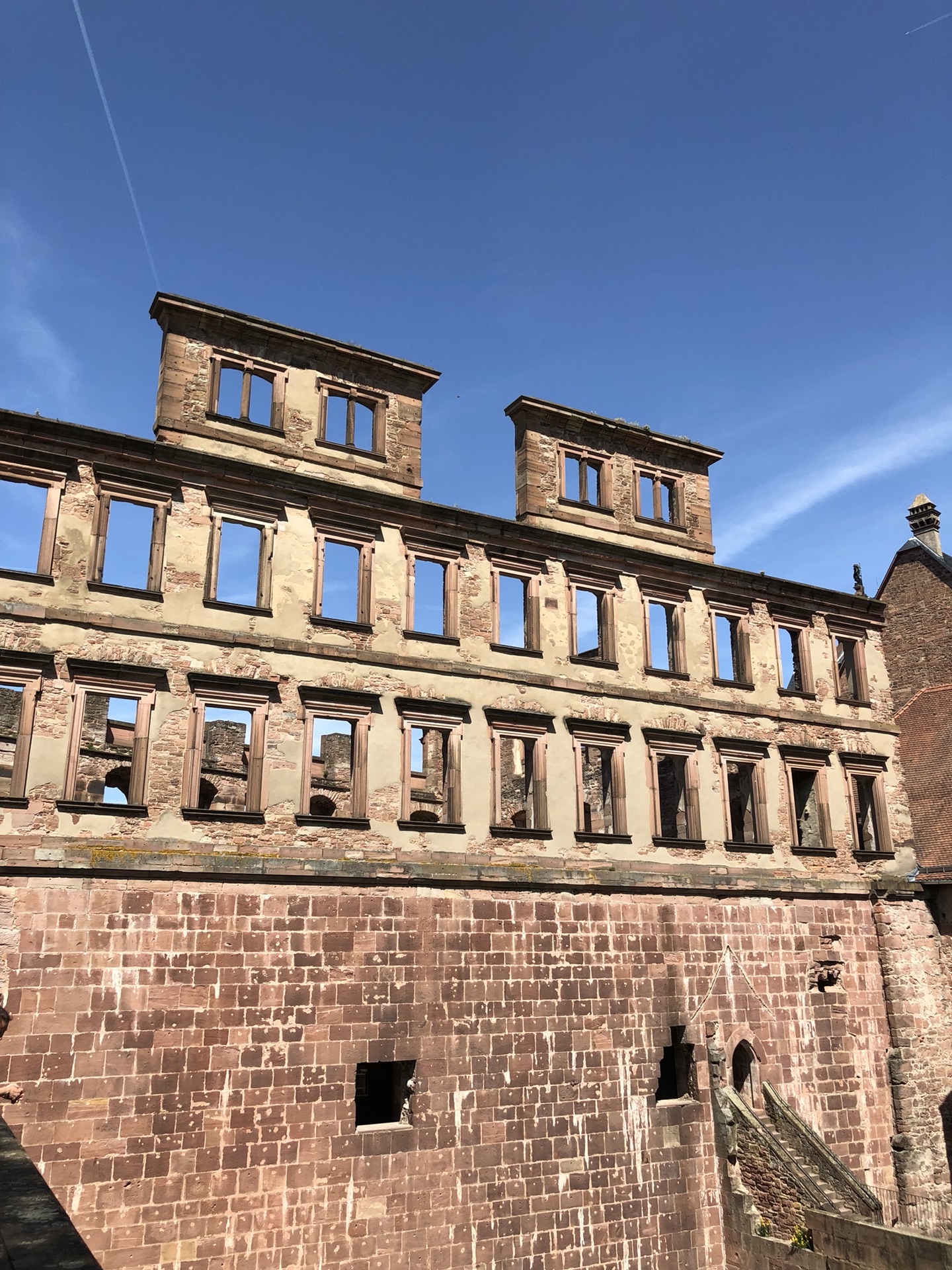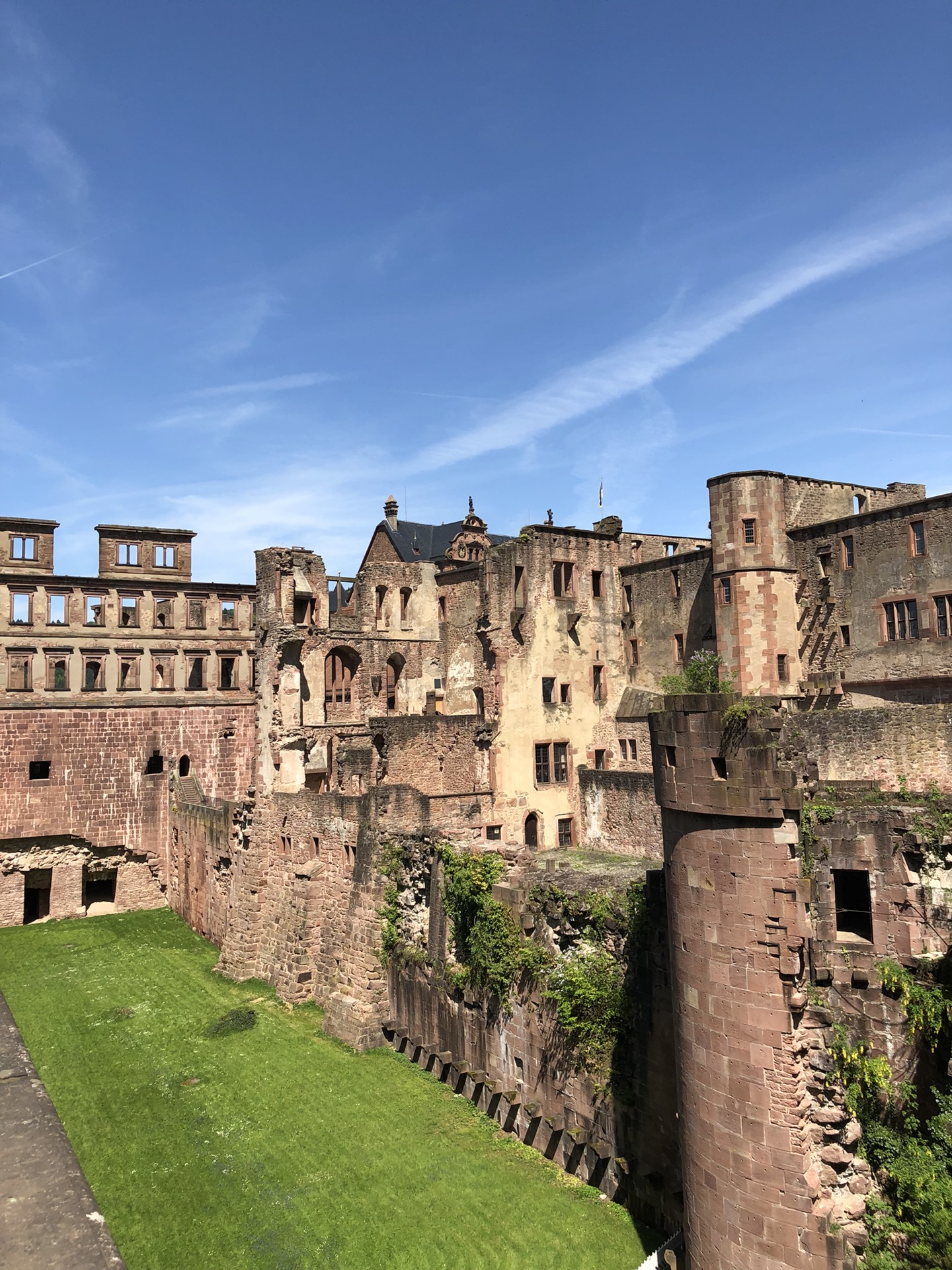 城堡内的景象,海德堡城堡历时400年才完工,曾经是欧洲最大的城堡之一。城堡内部结构复杂,包括防御工事、居室和宫殿和城堡花园等,当年是一座军事要塞,同时也是选帝侯宫邸。