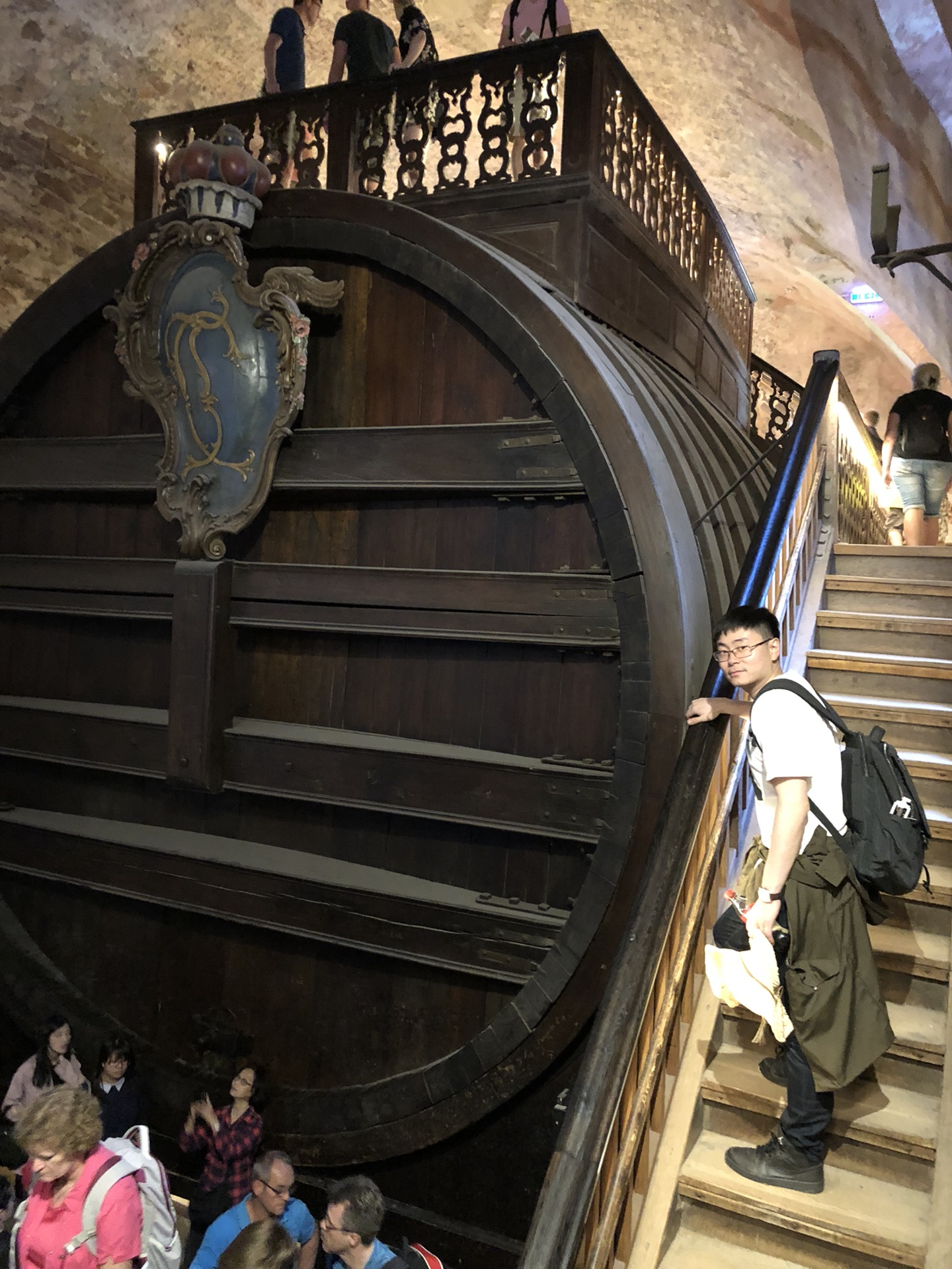 城堡酒窖内的大酒桶,能装20多万公升的酒。。看到这个我不禁扪心自问,我tm为什么要在这个戒酒的时候来这里!