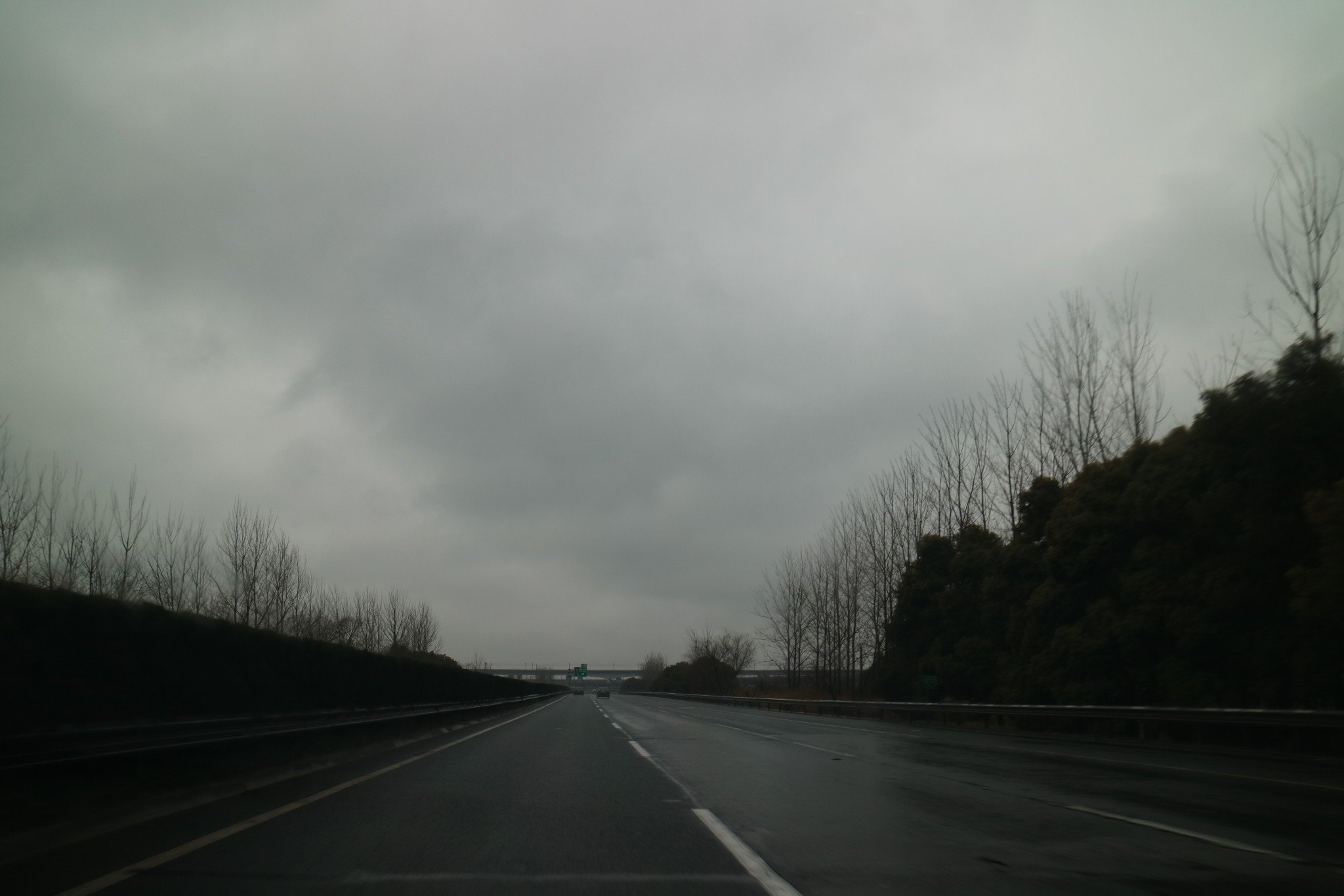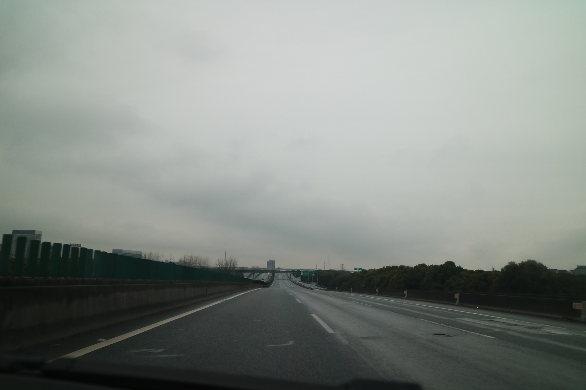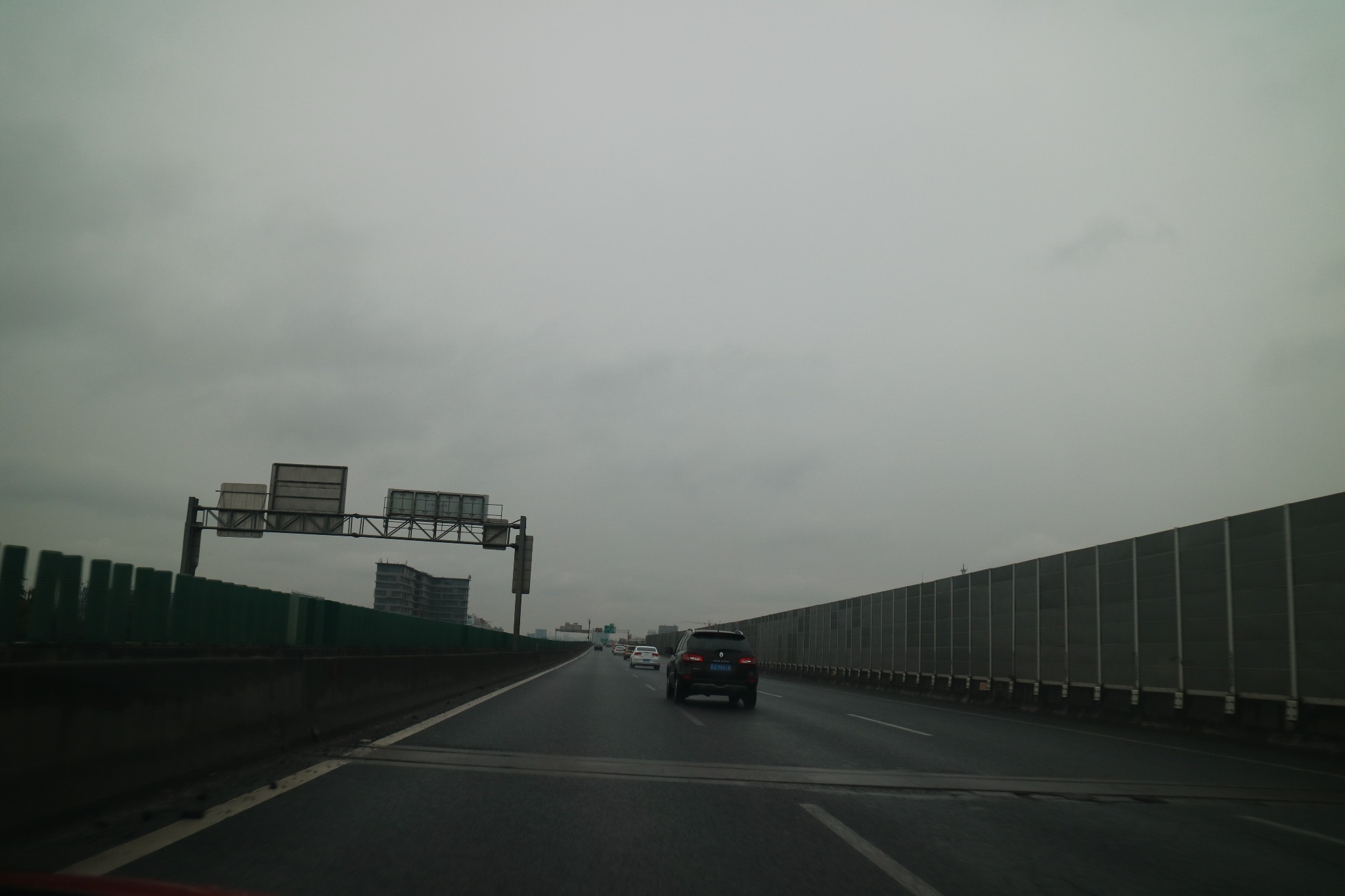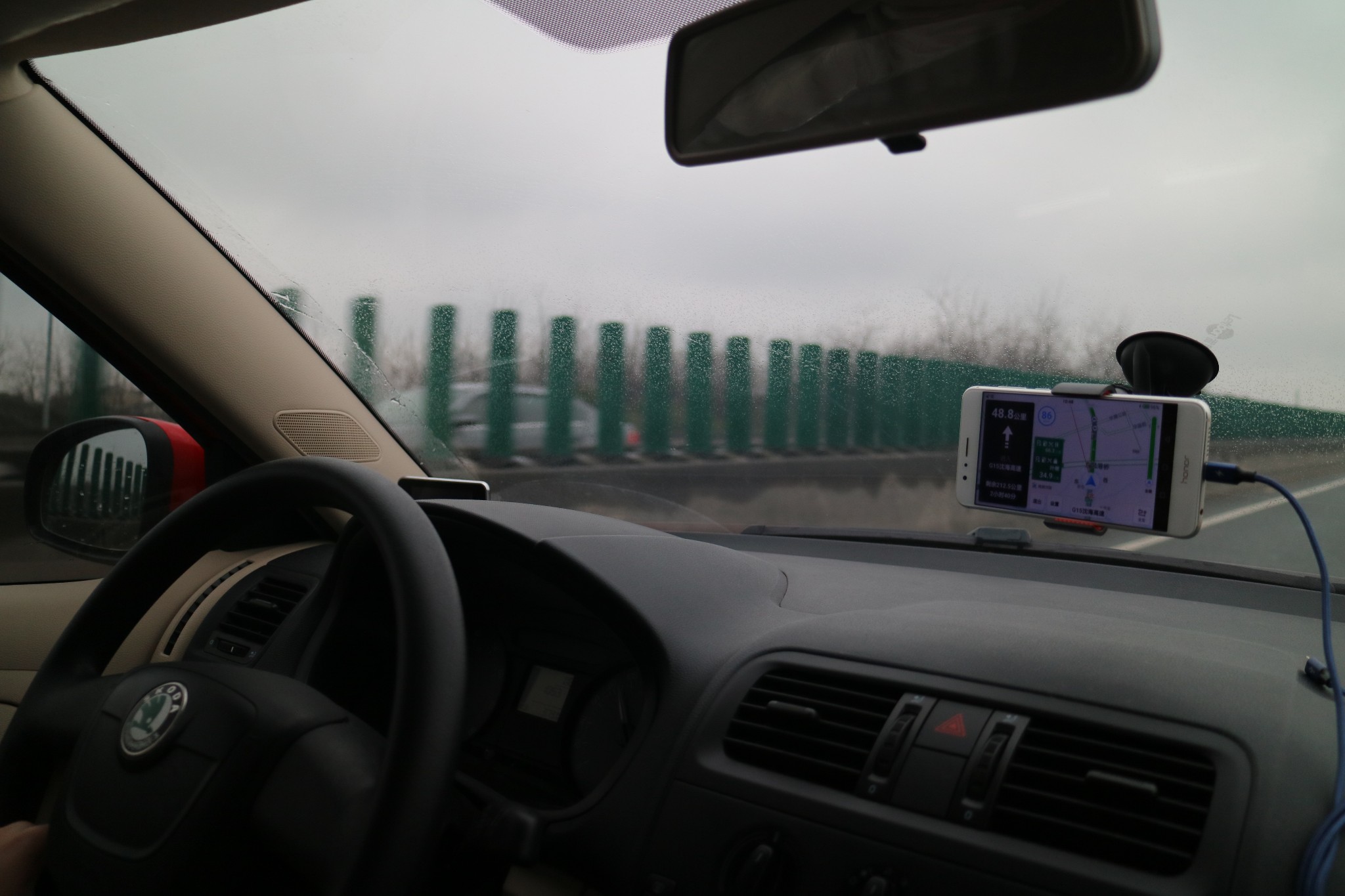 刚出发时是家里领导开车,天气灰蒙蒙的,车速并不快