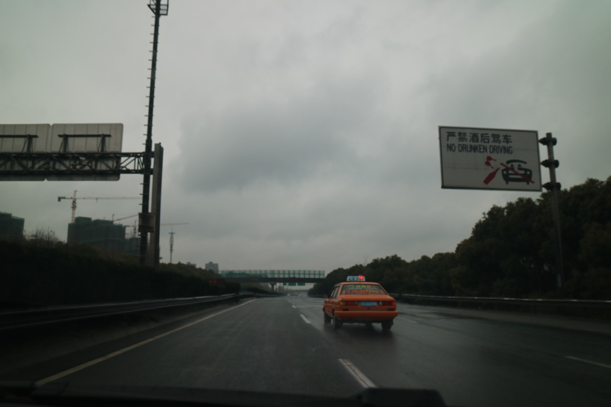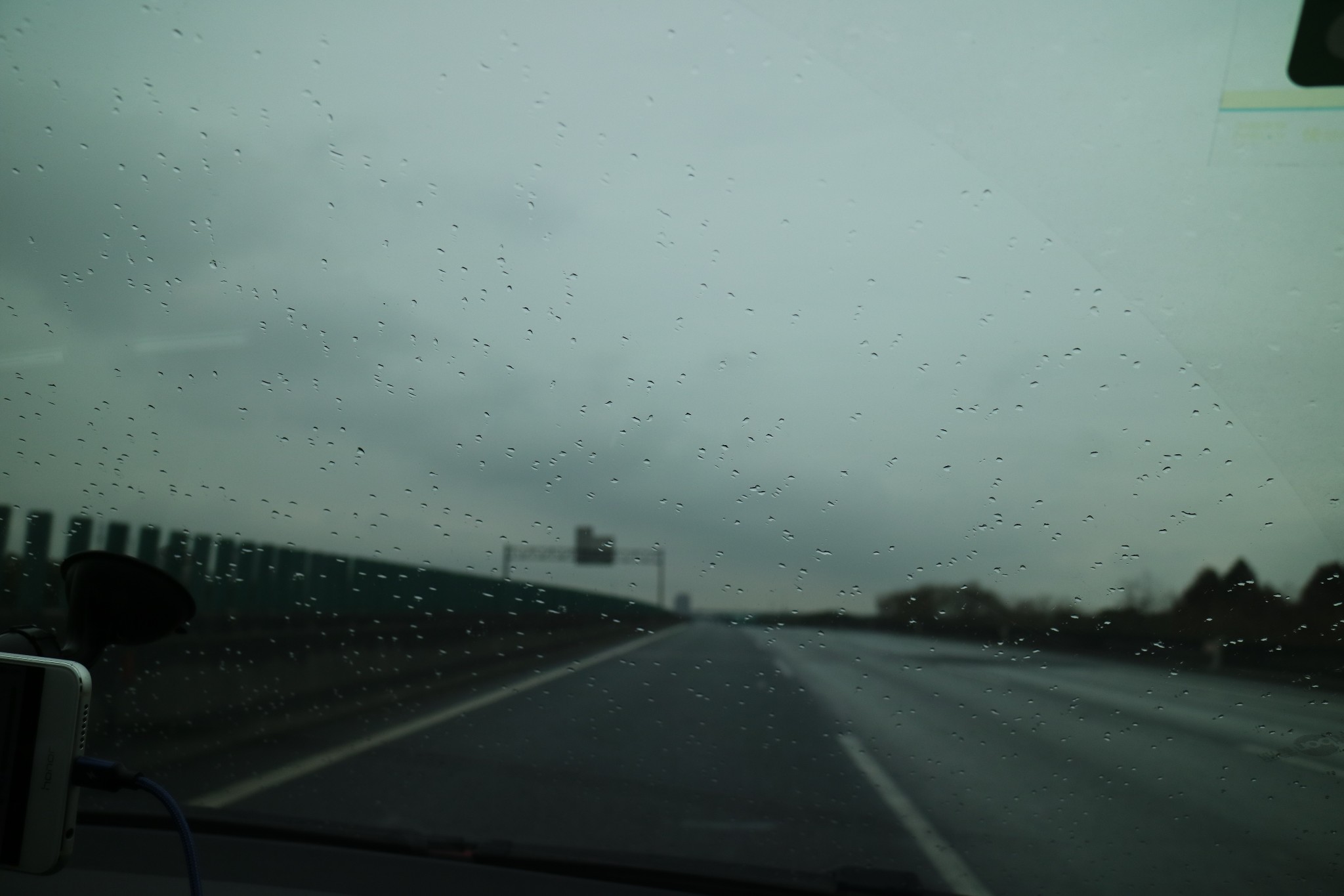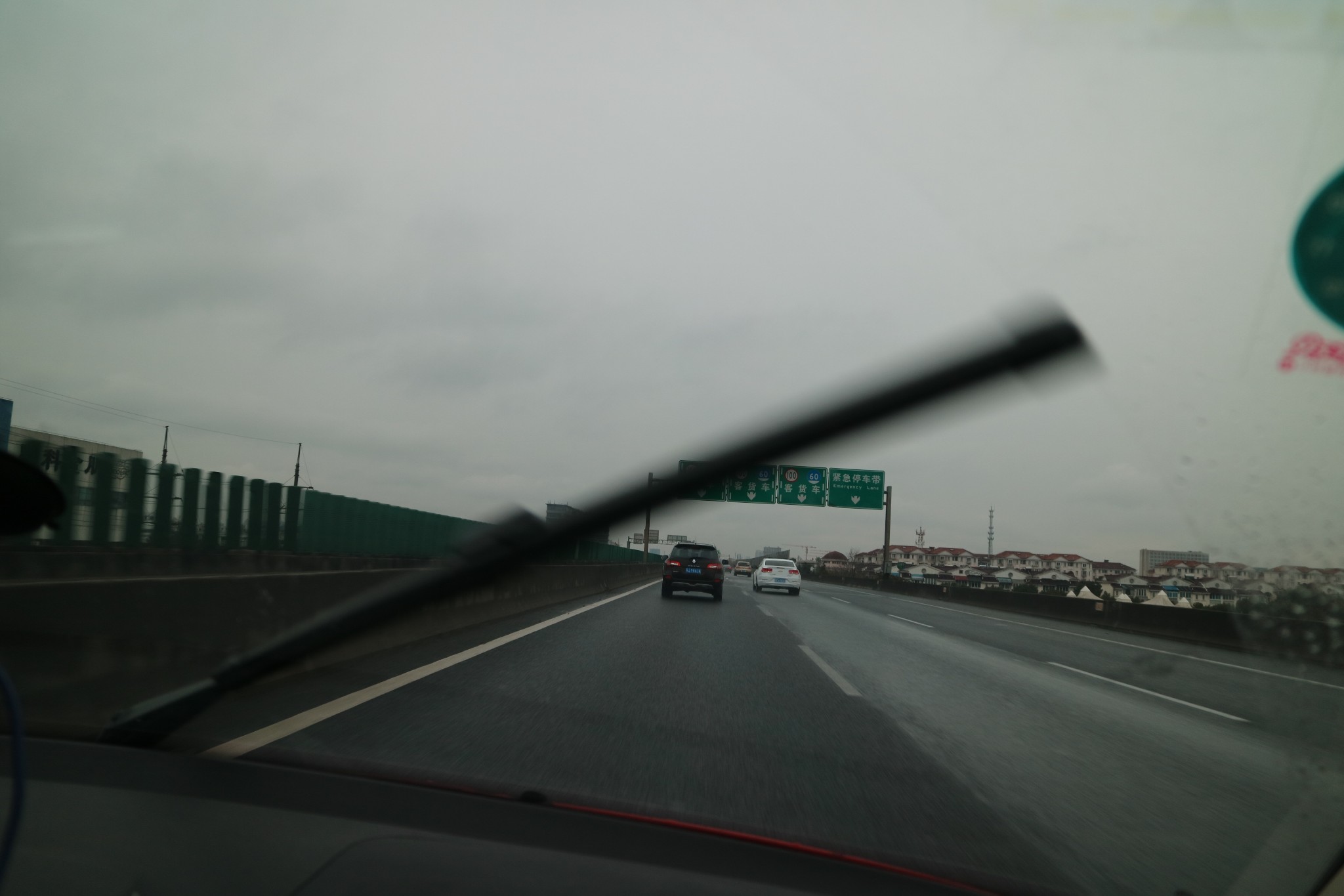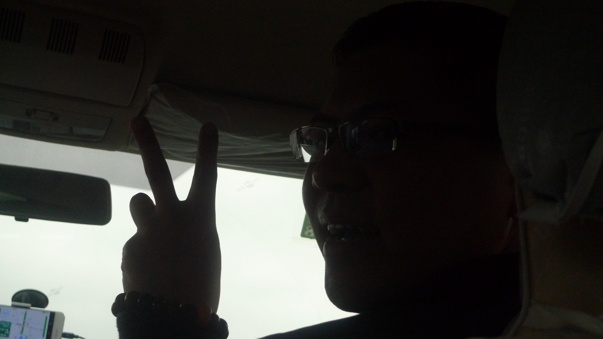 刚出发时是家里领导开车,天气灰蒙蒙的,车速并不快