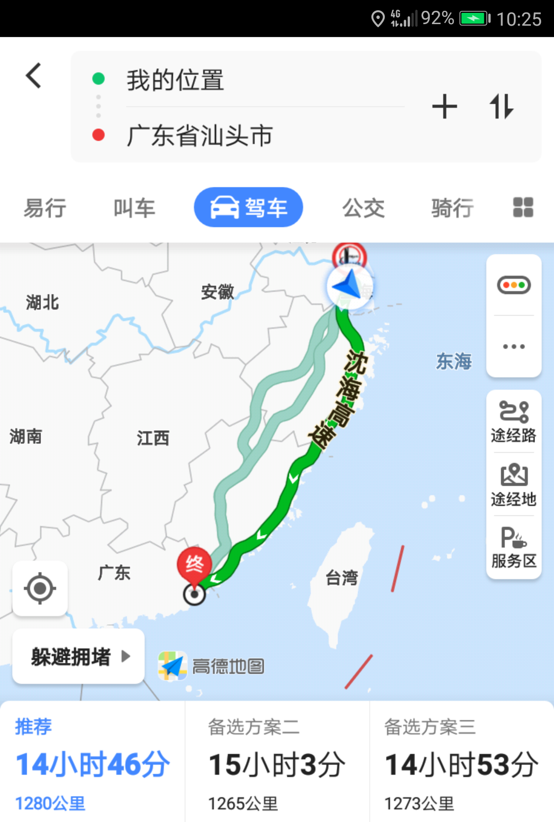 今天的目标是朝着汕头方向尽可能多赶路,也没确定晚上的住宿地,因此没有提前预定酒店