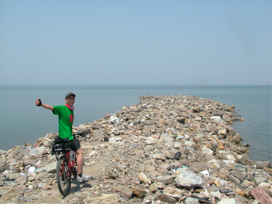 霸气的狗狗表演完,接着有人搭讪!立马回应。是个守岛的大叔,说明情况后,大叔二话没说给我灌满水,还一边和我唠家常,说他儿子也像我这么大,现在在大连当兵,还说喝完了再来灌。告别大叔,询问去海滩路线,什么!还有五公里!!带着无比深重的怨念继续前进。