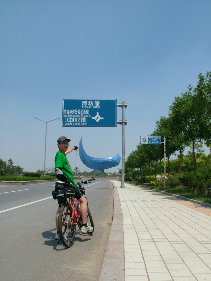 经过近两个半小时的奋战终于见到潍坊港标志!ps:前面那个雕塑很壮观 ,这时候温度急剧上升。
