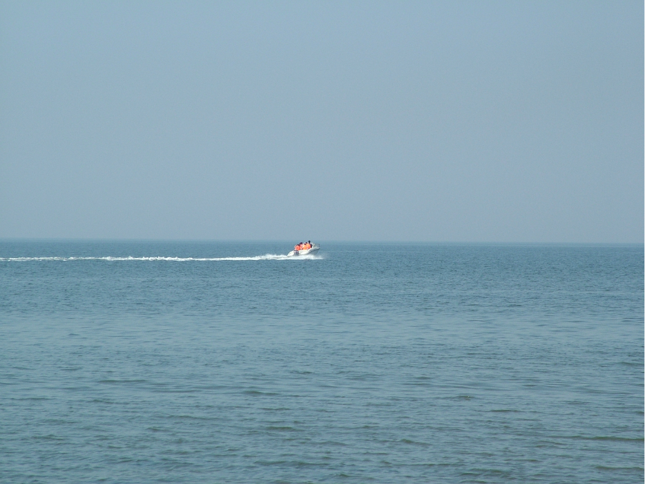 海风,浪声,咸湿的味道,微凉的海滩,海天一色的蓝。令人忘我。