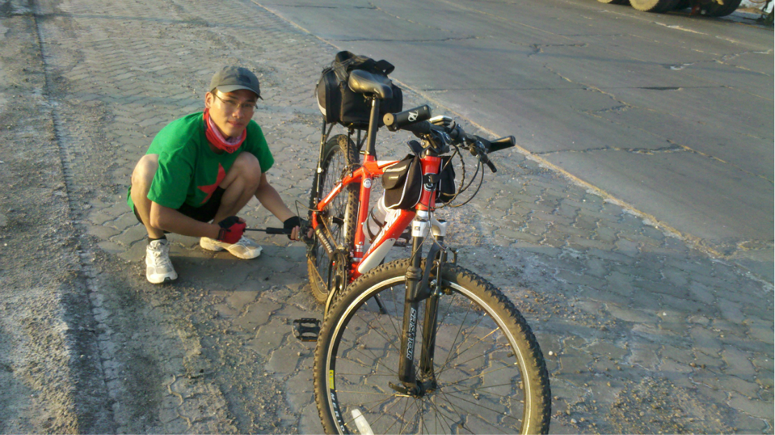 最苦逼的事发生了:爆胎!!于是淡定的修补