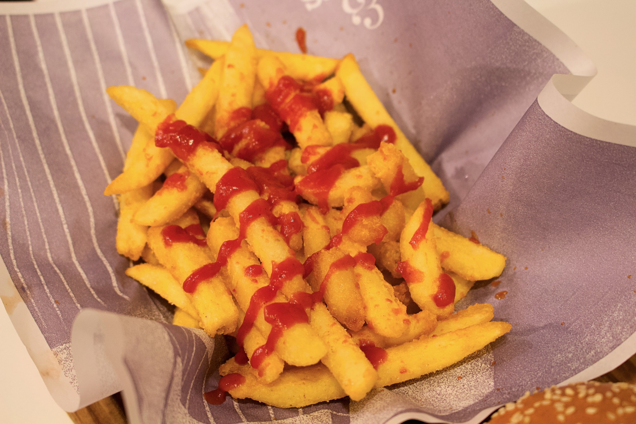 Summer sunset burger和我的培根芝士汉堡很像,不过好像高了一层,因为里面夹了一层菠萝片,还夹了牛油果酱。感觉汉堡里加菠萝很怪,但是吃起来完全不觉得。很多汉堡里还会加一层beetroot片,就是红色的很像萝卜的那个,吃一口,嘴唇舌头全部变红紫色,化妆舞会必备。