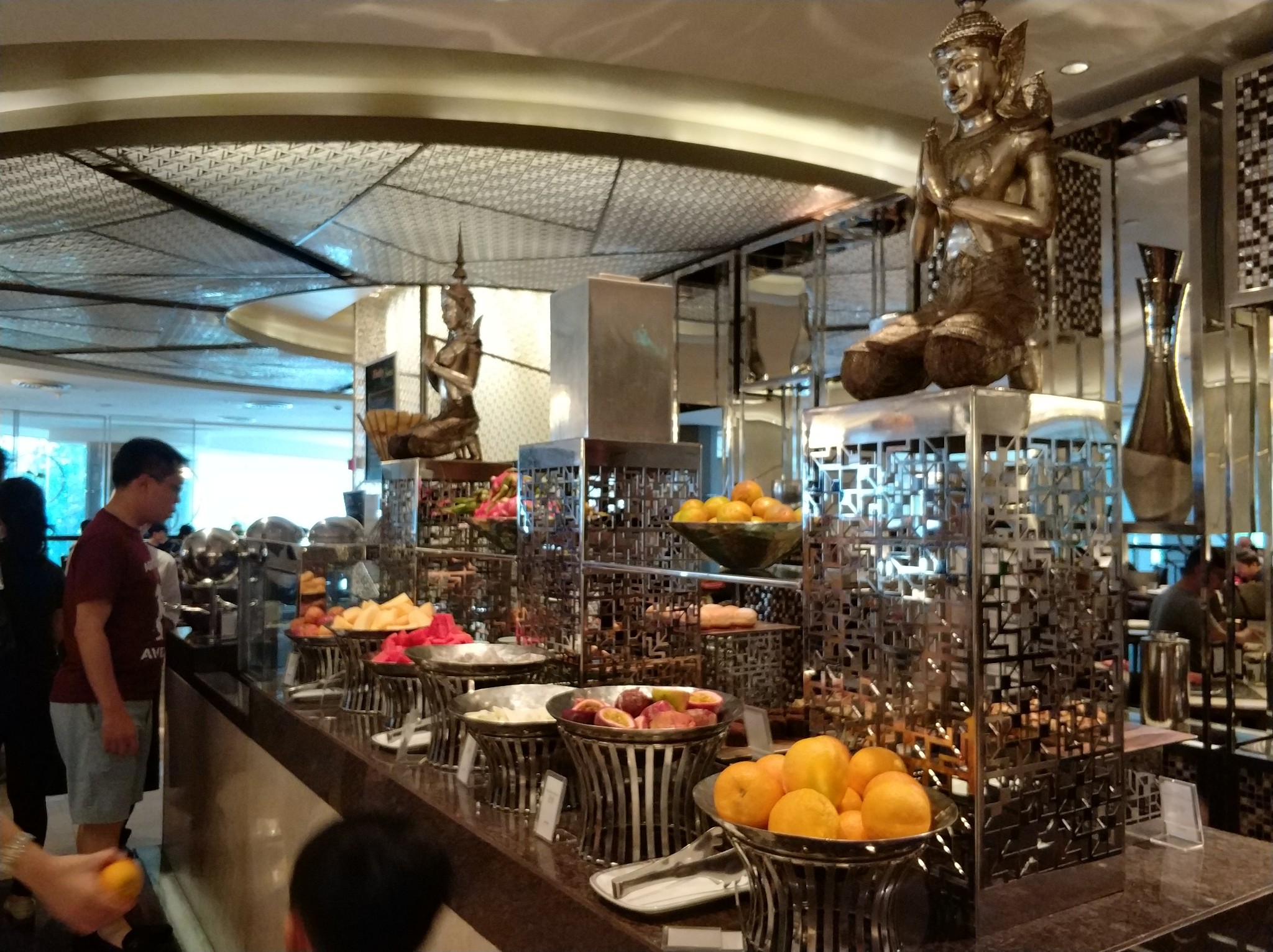 酒店其中一间房升到了角套,房间向外望正对着四面佛和Central World商圈,欢迎水果什么的都有,并且送了两人份的早餐。